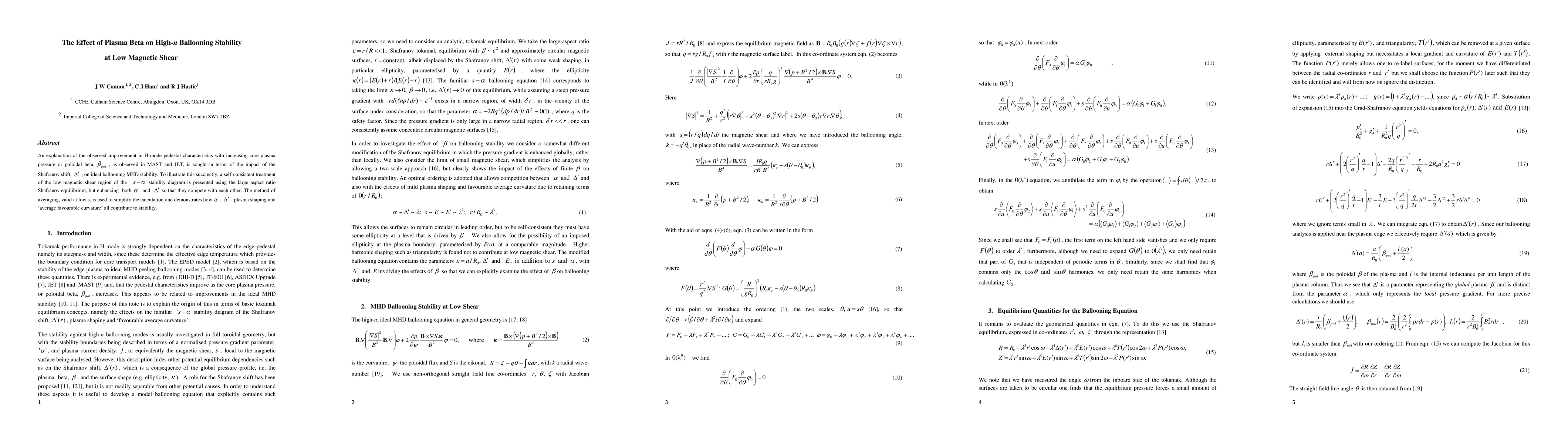This study investigates how plasma beta affects high-n ballooning stability in tokamaks like MAST and JET, finding a link between improved pedestal characteristics and ideal ballooning MHD stability.