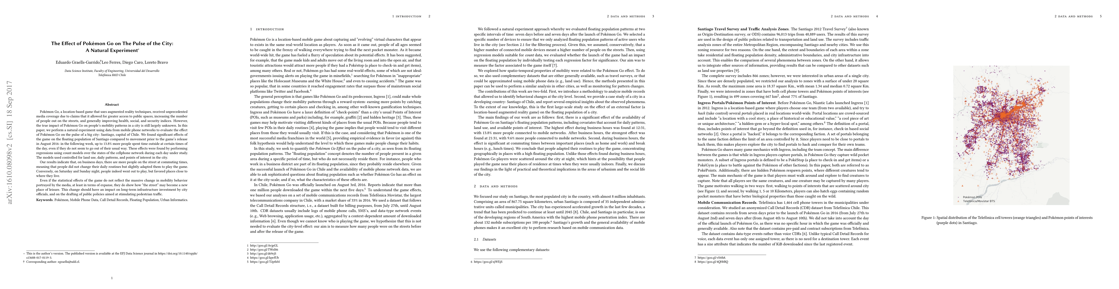Pok\'emon Go, a location-based game that uses augmented reality techniques, received unprecedented media coverage due to claims that it allowed for greater access to public spaces, increasing the number of people out on the streets, and generally improving health, social, and security indices. However, the true impact of Pok\'emon Go on people's mobility patterns in a city is still largely unknown. In this paper, we perform a natural experiment using data from mobile phone networks to evaluate the effect of Pok\'emon Go on the pulse of a big city: Santiago, capital of Chile. We found significant effects of the game on the floating population of Santiago compared to movement prior to the game's release in August 2016: in the following week, up to 13.8\% more people spent time outside at certain times of the day, even if they do not seem to go out of their usual way. These effects were found by performing regressions using count models over the states of the cellphone network during each day under study. The models used controlled for land use, daily patterns, and points of interest in the city. Our results indicate that, on business days, there are more people on the street at commuting times, meaning that people did not change their daily routines but slightly adapted them to play the game. Conversely, on Saturday and Sunday night, people indeed went out to play, but favored places close to where they live. Even if the statistical effects of the game do not reflect the massive change in mobility behavior portrayed by the media, at least in terms of expanse, they do show how "the street" may become a new place of leisure. This change should have an impact on long-term infrastructure investment by city officials, and on the drafting of public policies aimed at stimulating pedestrian traffic.