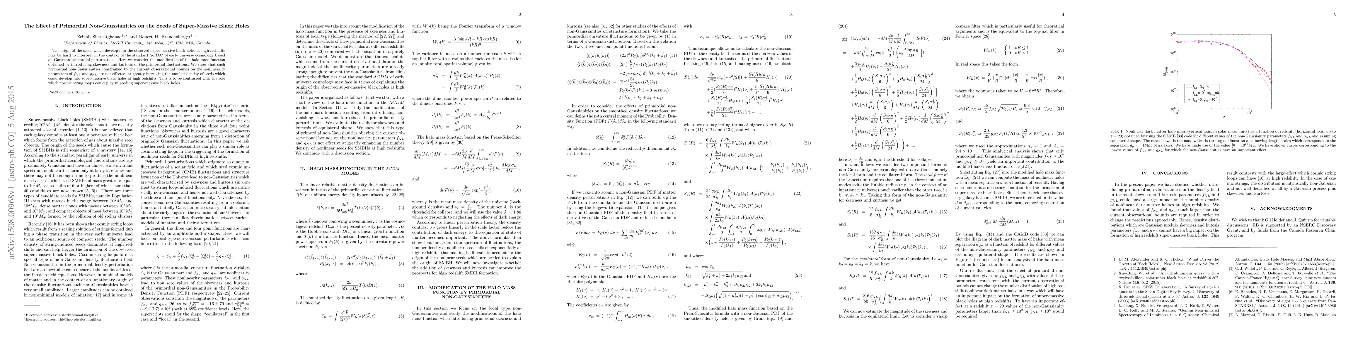 This paper explores how primordial non-Gaussianities affect the formation of seeds for super-massive black holes, finding that current observational constraints limit their impact. In contrast, cosmic string loops are suggested to play a more significant role in this process.