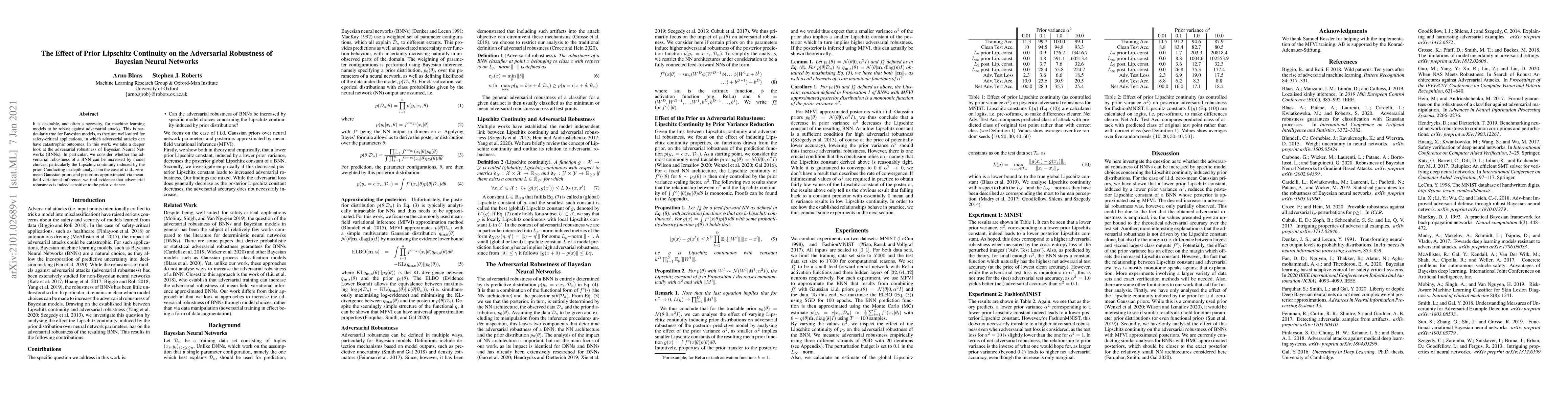 It is desirable, and often a necessity, for machine learning models to be robust against adversarial attacks. This is particularly true for Bayesian models, as they are well-suited for safety-critical applications, in which adversarial attacks can have catastrophic outcomes. In this work, we take a deeper look at the adversarial robustness of Bayesian Neural Networks (BNNs). In particular, we consider whether the adversarial robustness of a BNN can be increased by model choices, particularly the Lipschitz continuity induced by the prior. Conducting in-depth analysis on the case of i.i.d., zero-mean Gaussian priors and posteriors approximated via mean-field variational inference, we find evidence that adversarial robustness is indeed sensitive to the prior variance.