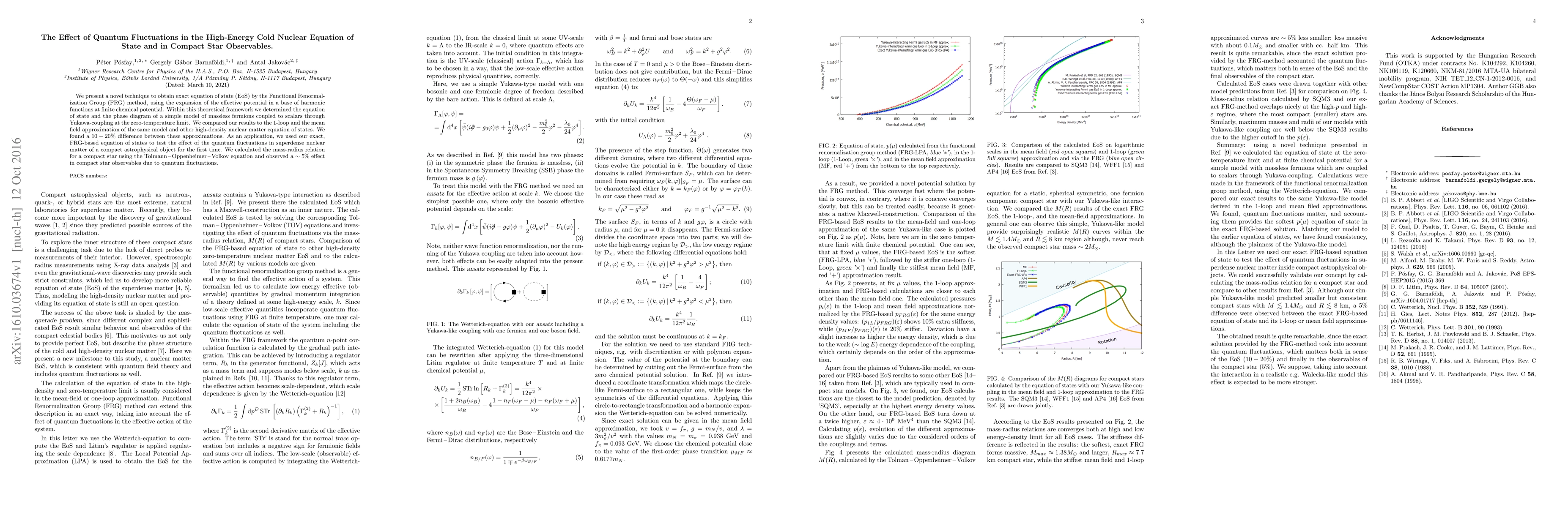 We present a novel technique to obtain exact equation of state (EoS) by the Functional Renormalization Group (FRG) method, using the expansion of the effective potential in a base of harmonic functions at finite chemical potential. Within this theoretical framework we determined the equation of state and the phase diagram of a simple model of massless fermions coupled to scalars through Yukawa-coupling at the zero-temperature limit. We compared our results to the 1-loop and the mean field approximation of the same model and other high-density nuclear matter equation of states. We found a $10-20\%$ difference between these approximations. As an application, we used our exact, FRG-based equation of states to test the effect of the quantum fluctuations in superdense nuclear matter of a compact astrophysical object for the first time. We calculated the mass-radius relation for a compact star using the Tolmann-Oppenheimer-Volkov equation and observed a $\sim 5\%$ effect in compact star observables due to quantum fluctuations.