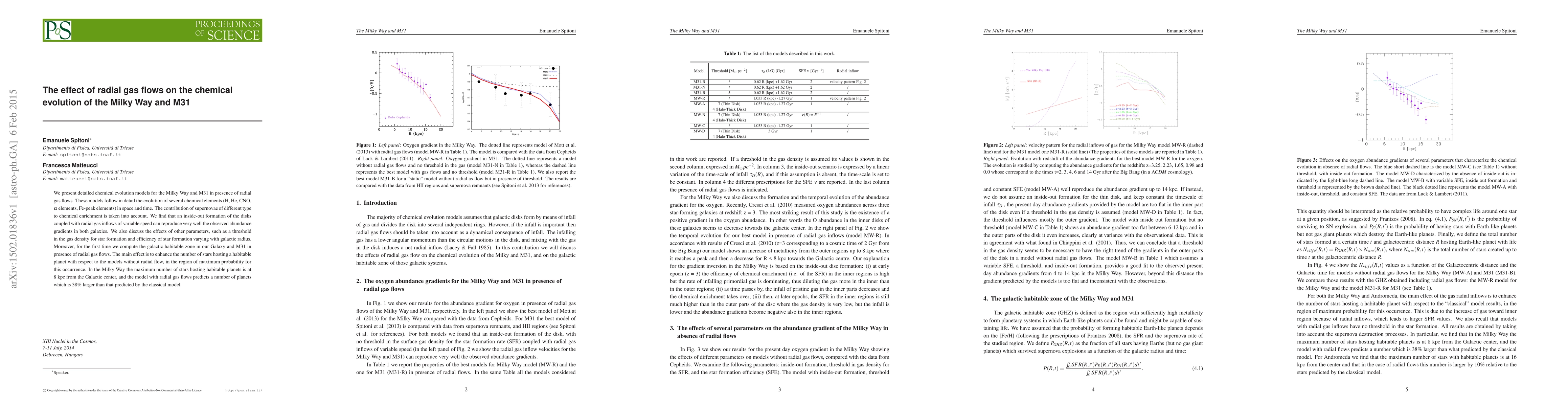 This paper presents detailed chemical evolution models for the Milky Way and M31, incorporating radial gas flows, which successfully reproduce observed abundance gradients. It also predicts a 38% increase in the number of stars with habitable planets in the Milky Way due to these flows, with the maximum occurring at 8 kpc from the Galactic center.