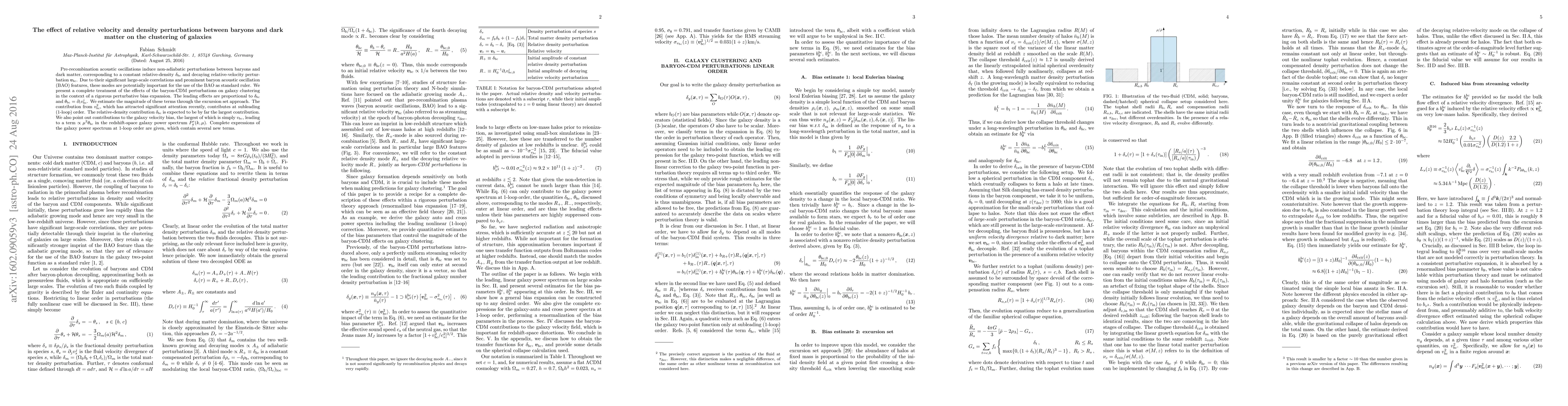 Pre-recombination acoustic oscillations induce non-adiabatic perturbations between baryons and dark matter, corresponding to a constant relative-density $\delta_{bc}$ and decaying relative-velocity perturbation $\vec{v}_{bc}$. Due to their significant large-scale correlations and prominent baryon acoustic oscillation (BAO) features, these modes are potentially important for the use of the BAO as standard ruler. We present a complete treatment of the effects of the baryon-CDM perturbations on galaxy clustering in the context of a rigorous perturbative bias expansion. The leading effects are proportional to $\delta_{bc}$ and $\theta_{bc} = \partial_i v_{bc}^i$. We estimate the magnitude of these terms through the excursion set approach. The contribution from $v_{bc}^2$, which has attracted significant attention recently, contributes at subleading (1-loop) order. The relative-density contribution $\delta_{bc}$ is expected to be by far the largest contribution. We also point out contributions to the galaxy velocity bias, the largest of which is simply $v_{bc}$, leading to a term $\propto \mu^2\theta_{bc}$ in the redshift-space galaxy power spectrum $P_g^s(k,\mu)$. Complete expressions of the galaxy power spectrum at 1-loop order are given, which contain several new terms.