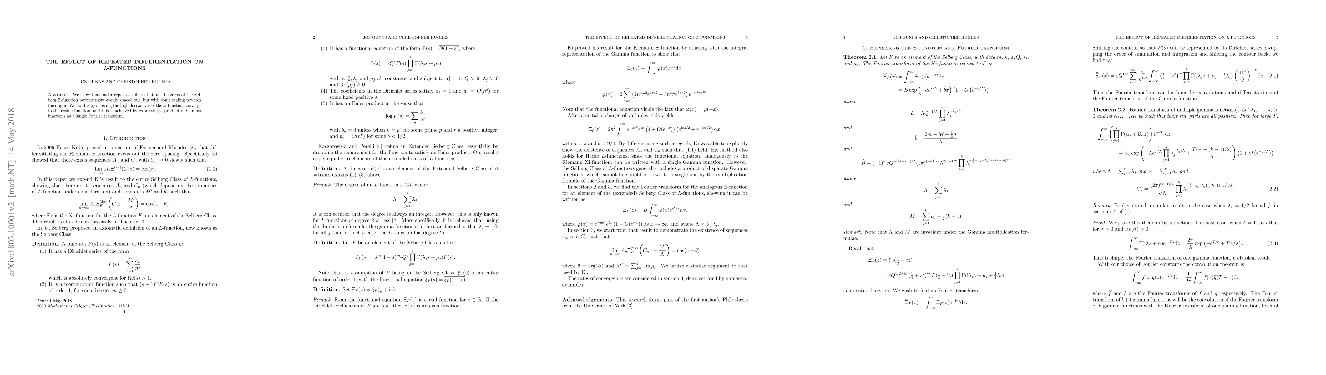Summary: Repeated differentiation of the Selberg $\Xi$-function results in zeros that become more evenly spaced, scaling towards the origin, as the high derivatives converge to the cosine function through the use of a single Fourier transform of a product of Gamma functions.
