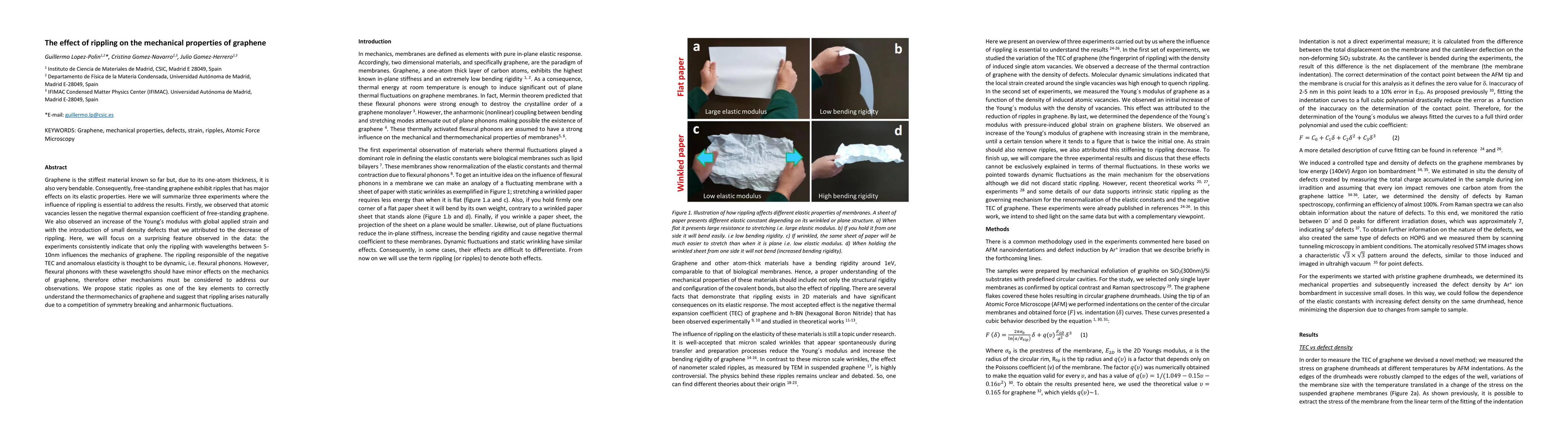 Graphene is the stiffest material known so far but, due to its one-atom thickness, it is also very bendable. Consequently, free-standing graphene exhibit ripples that has major effects on its elastic properties. Here we will summarize three experiments where the influence of rippling is essential to address the results. Firstly, we observed that atomic vacancies lessen the negative thermal expansion coefficient of free-standing graphene. We also observed an increase of the Young's modulus with global applied strain and with the introduction of small density defects that we attributed to the decrease of rippling. Here, we will focus on a surprising feature observed in the data: the experiments consistently indicate that only the rippling with wavelengths between 5-10nm influences the mechanics of graphene. The rippling responsible of the negative TEC and anomalous elasticity is thought to be dynamic, i.e. flexural phonons. However, flexural phonons with these wavelengths should have minor effects on the mechanics of graphene, therefore other mechanisms must be considered to address our observations. We propose static ripples as one of the key elements to correctly understand the thermomechanics of graphene and suggest that rippling arises naturally due to a competition of symmetry breaking and anharmonic fluctuations.