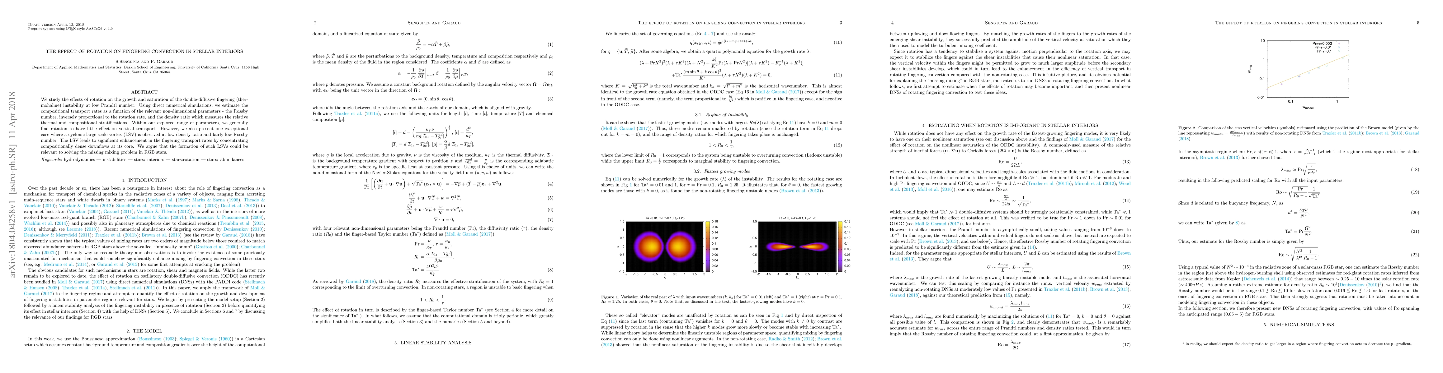 This study investigates the influence of rotation on double-diffusive fingering convection in stellar interiors, finding minimal impact on vertical transport. However, it identifies a rare case where a cyclonic large-scale vortex enhances compositional transport, potentially addressing the missing mixing problem in red giant branch stars.