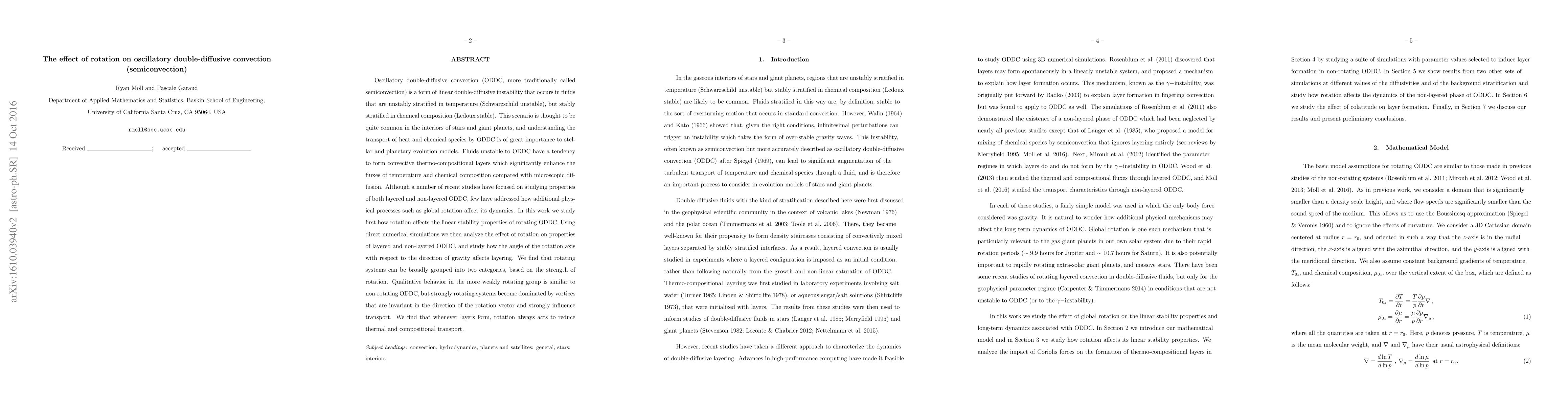 This study investigates the impact of global rotation on oscillatory double-diffusive convection (ODDC) in fluids, revealing that rotation significantly alters its dynamics. The research finds that rotation reduces transport in convective layers and that strongly rotating systems develop vortex structures that dominate the flow.
