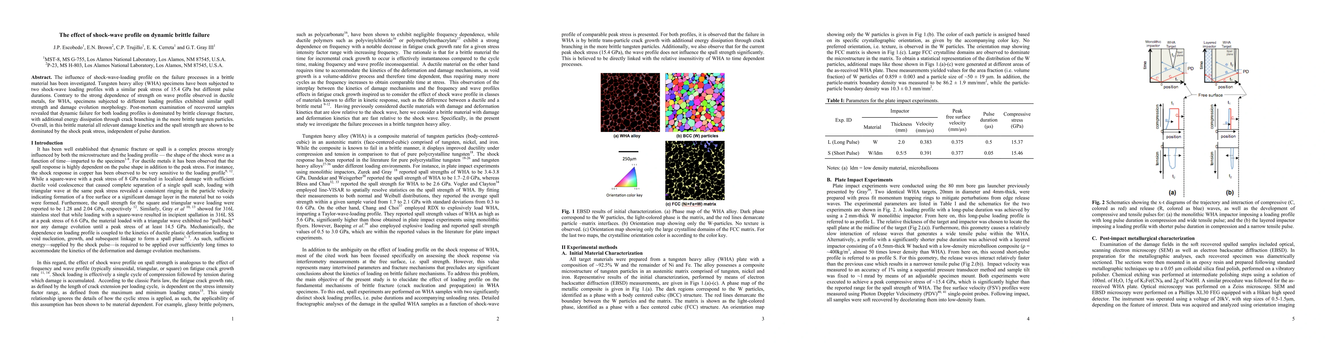 A study found that shock-wave loading profiles have little effect on brittle material failure in tungsten heavy alloy, with spall strength remaining similar regardless of pulse duration. The dominant failure mechanism was brittle cleavage fracture, independent of the shock peak stress.