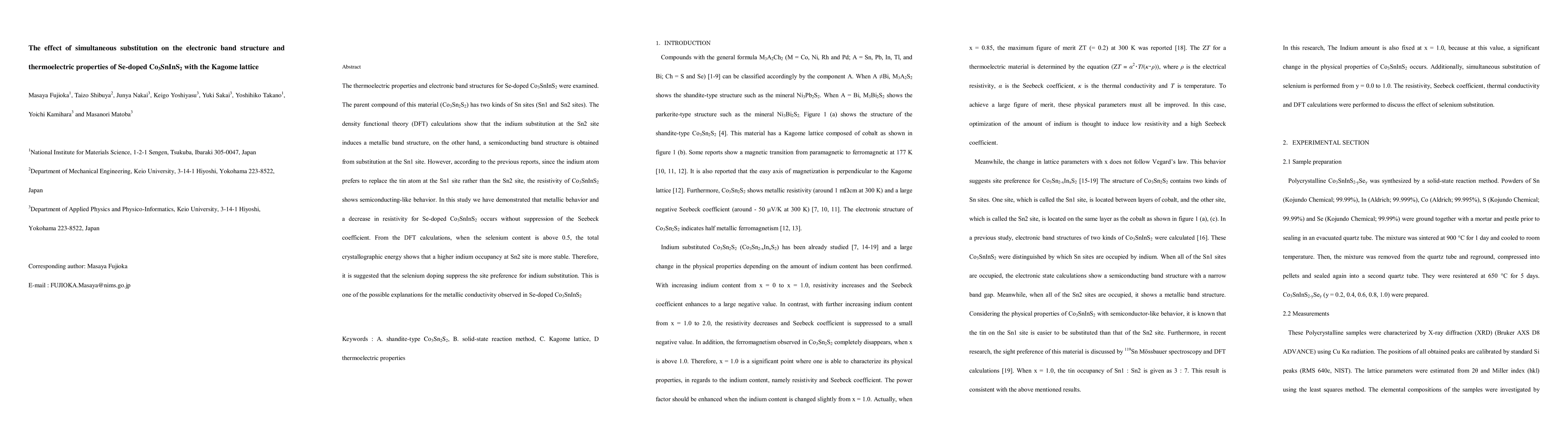 Researchers explored the effect of selenium doping on Co3SnInS2, finding that it can induce metallic behavior without suppressing Seebeck coefficient, contradicting previous reports.