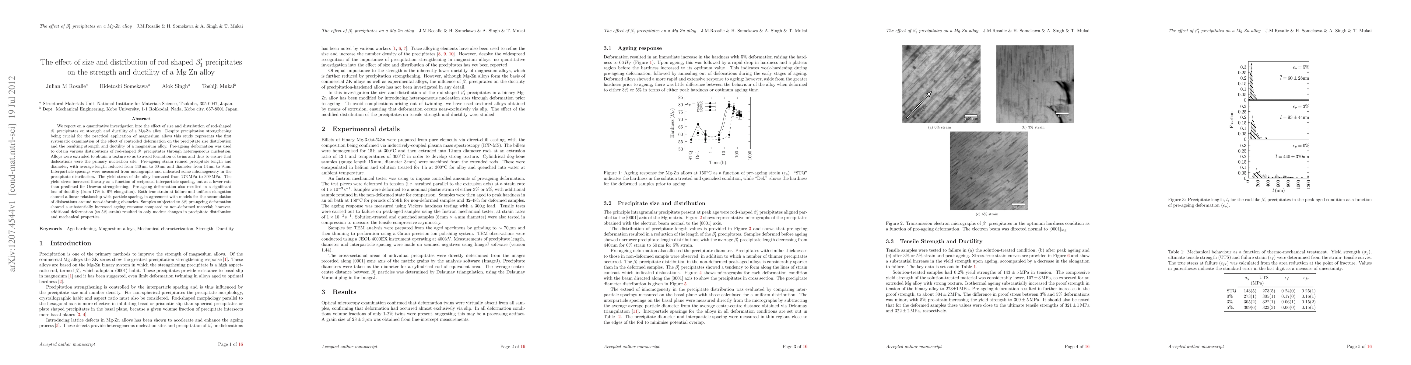 This study investigates how the size and distribution of rod-shaped β' precipitates in Mg-Zn alloy affect its strength and ductility. Pre-ageing deformation refined precipitates, increasing yield stress but significantly reducing ductility, indicating a complex interplay between precipitate characteristics and mechanical properties.