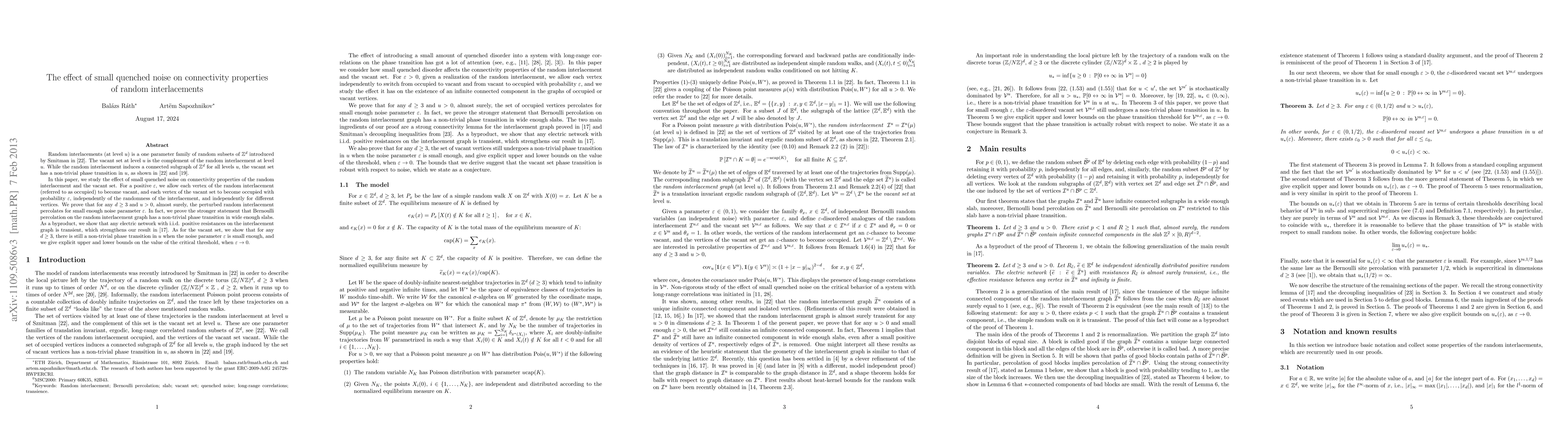 This paper investigates the impact of small quenched noise on the connectivity properties of random interlacements and their vacant sets in Z^d. It demonstrates that for sufficiently small noise, the perturbed random interlacement percolates and exhibits a non-trivial phase transition, while the vacant set retains a non-trivial phase transition in connectivity as the noise parameter approaches zero.
