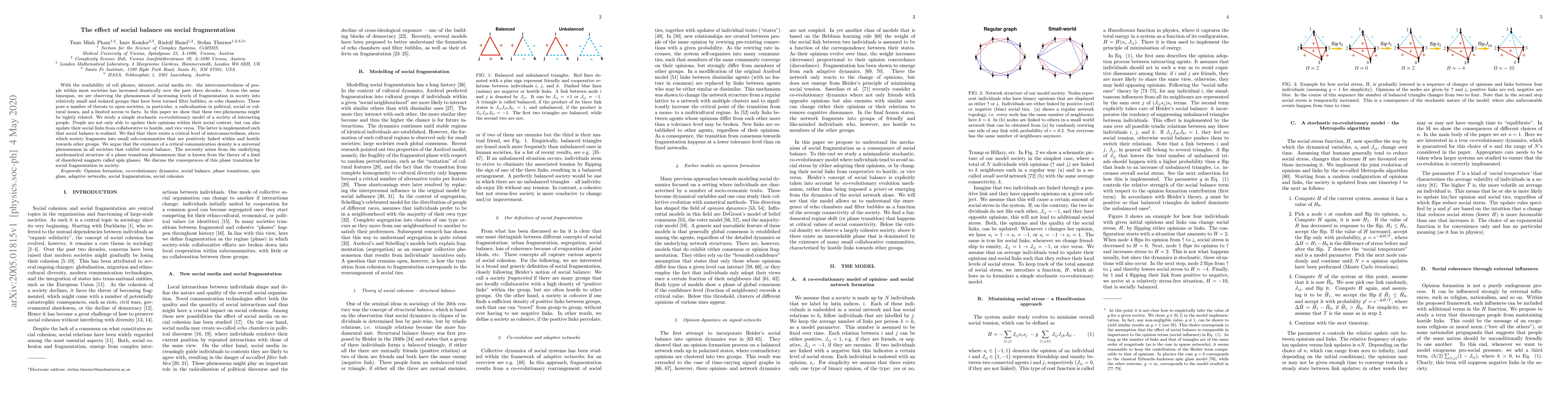 This paper explores the relationship between social interconnectedness and fragmentation, demonstrating that a critical level of communication density can lead to societal fragmentation into isolated sub-communities. Using a stochastic co-evolutionary model, it shows that social balance drives this phase transition, akin to phenomena in spin glasses, with implications for radicalization and limited access to facts.