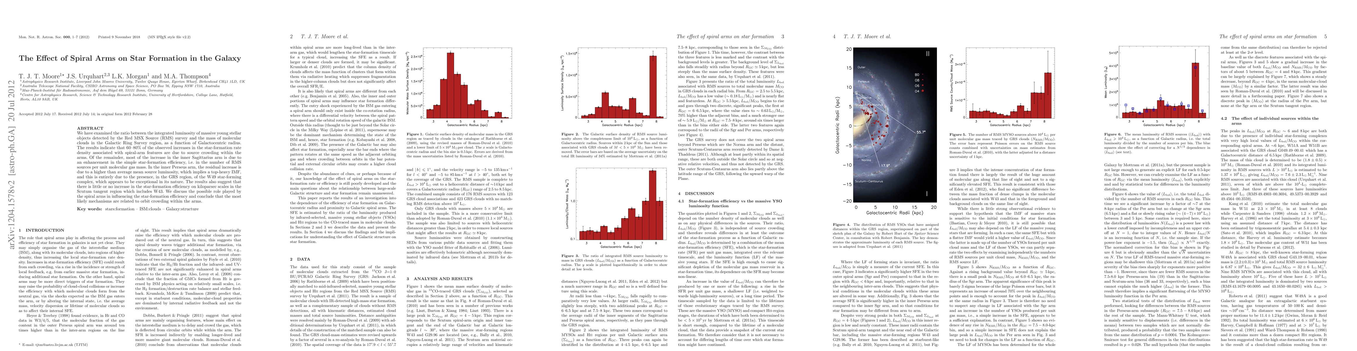 This study finds that spiral arms significantly influence star formation, with 60-80% of increased star-formation rates attributed to source crowding within the arms. The remaining increase in star-formation efficiency is mainly due to higher mean source luminosity in the Perseus arm, likely caused by the exceptional W49 star-forming complex.
