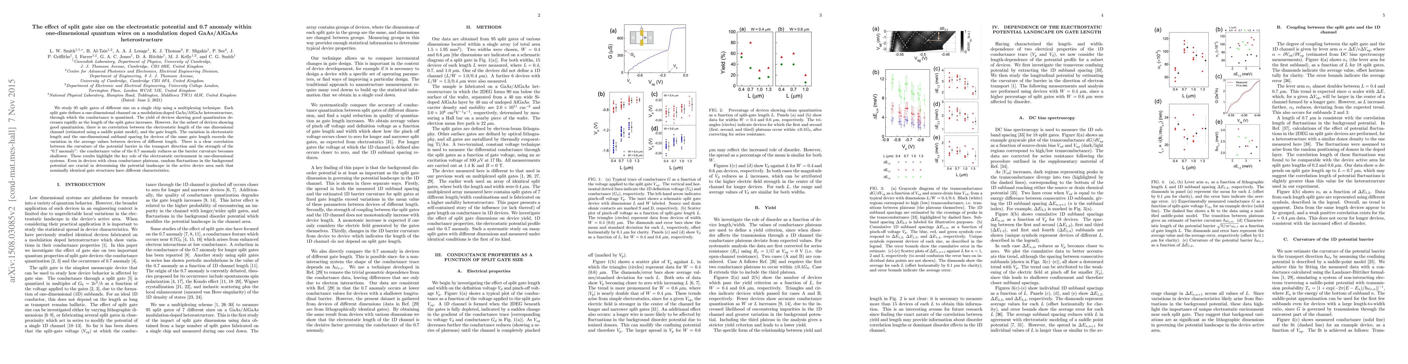 We study 95 split gates of different size on a single chip using a multiplexing technique. Each split gate defines a one-dimensional channel on a modulation-doped GaAs/AlGaAs heterostructure, through which the conductance is quantized. The yield of devices showing good quantization decreases rapidly as the length of the split gates increases. However, for the subset of devices showing good quantization, there is no correlation between the electrostatic length of the one dimensional channel (estimated using a saddle point model), and the gate length. The variation in electrostatic length and the one-dimensional subband spacing for devices of the same gate length exceeds the variation in the average values between devices of different length. There is a clear correlation between the curvature of the potential barrier in the transport direction and the strength of the "0.7 anomaly": the conductance value of the 0.7 anomaly reduces as the barrier curvature becomes shallower. These results highlight the key role of the electrostatic environment in one-dimensional systems. Even in devices with clean conductance plateaus, random fluctuations in the background potential are crucial in determining the potential landscape in the active device area such that nominally identical gate structures have different characteristics.