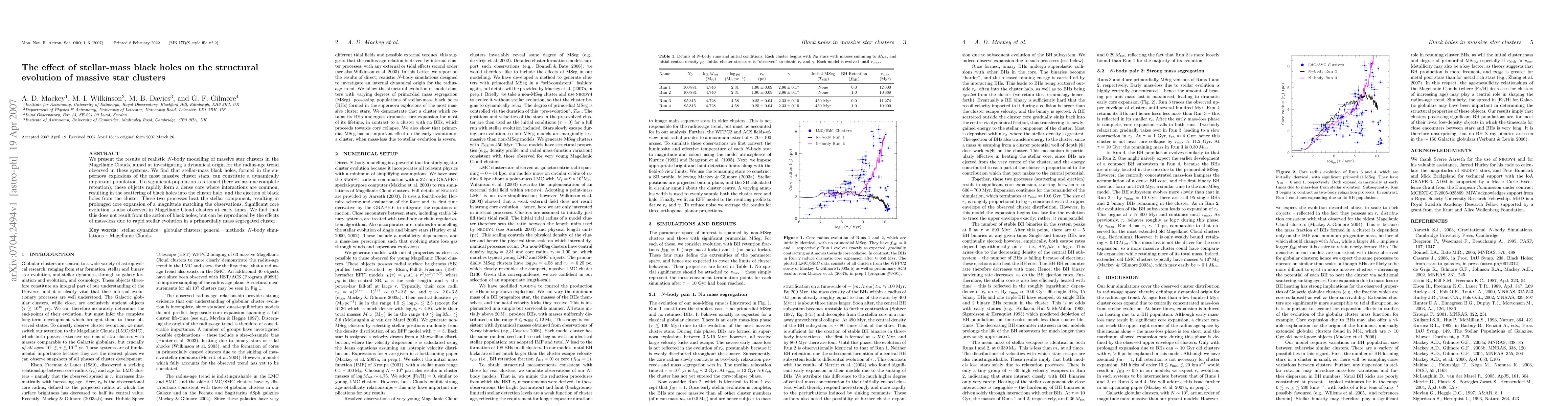 This study uses N-body simulations to explore how stellar-mass black holes formed from supernovae impact the structural evolution of massive star clusters in the Magellanic Clouds. The findings suggest that retained black holes create dense cores, leading to core expansion and heating of the stellar component, which matches observed trends.