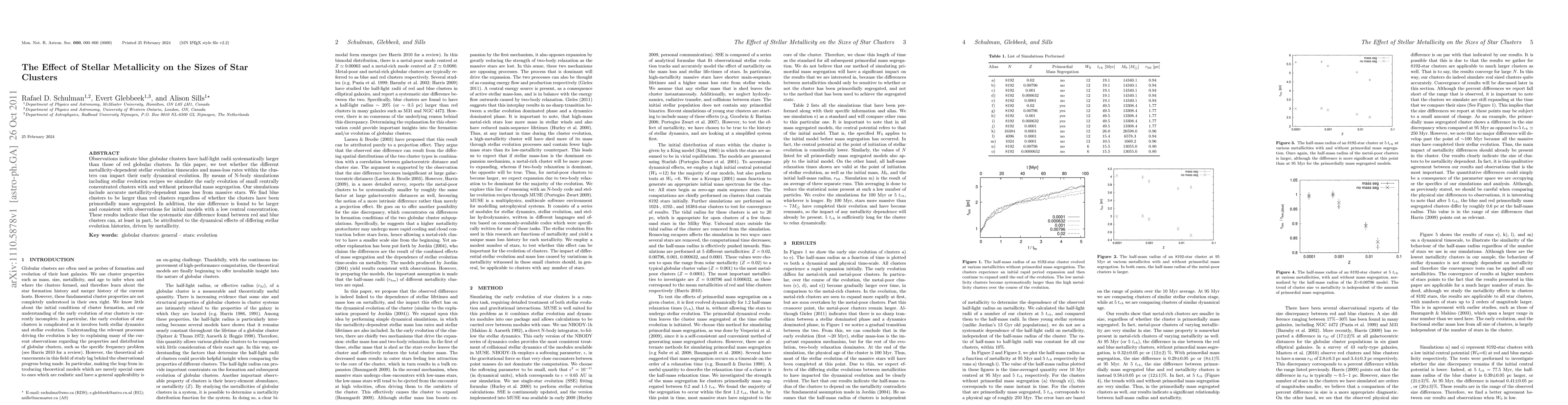 Observations indicate blue globular clusters have half-light radii systematically larger than those of red globular clusters. In this paper, we test whether the different metallicity-dependent stellar evolution timescales and mass-loss rates within the clusters can impact their early dynamical evolution. By means of N-body simulations including stellar evolution recipes we simulate the early evolution of small centrally concentrated clusters with and without primordial mass segregation. Our simulations include accurate metallicity-dependent mass loss from massive stars. We find blue clusters to be larger than red clusters regardless of whether the clusters have been primordially mass segregated. In addition, the size difference is found to be larger and consistent with observations for initial models with a low central concentration. These results indicate that the systematic size difference found between red and blue clusters can, at least in part, be attributed to the dynamical effects of differing stellar evolution histories, driven by metallicity.