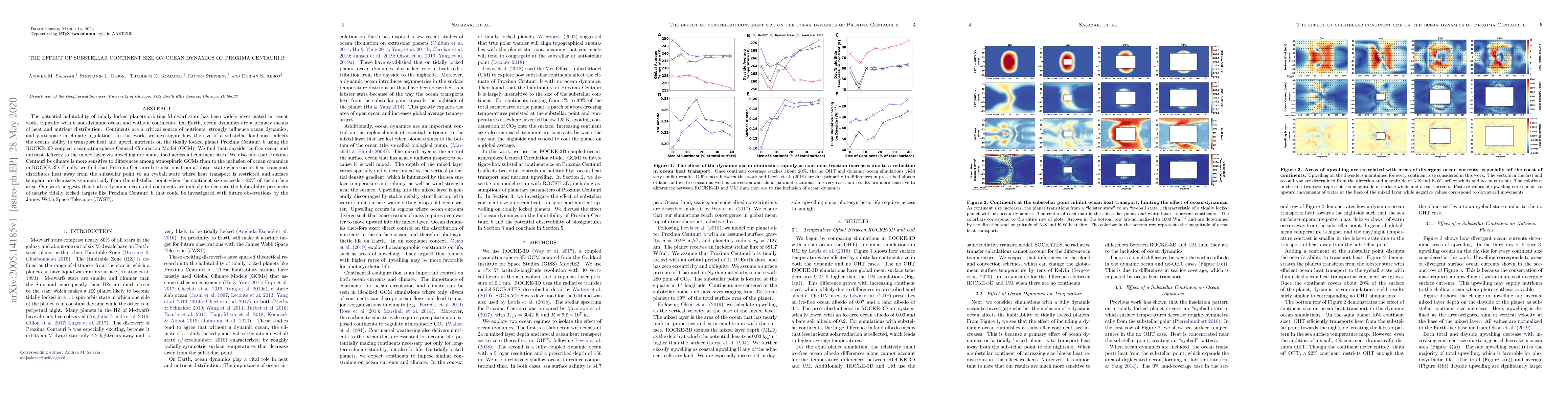 This study examines how varying sizes of continents on Proxima Centauri b affect ocean dynamics, finding that a dynamic ocean maintains heat and nutrient transport regardless of continent size. The planet's climate is more sensitive to atmospheric models than to ocean dynamics, and it transitions from a lobster to an eyeball state when continents exceed 20% of the surface area.