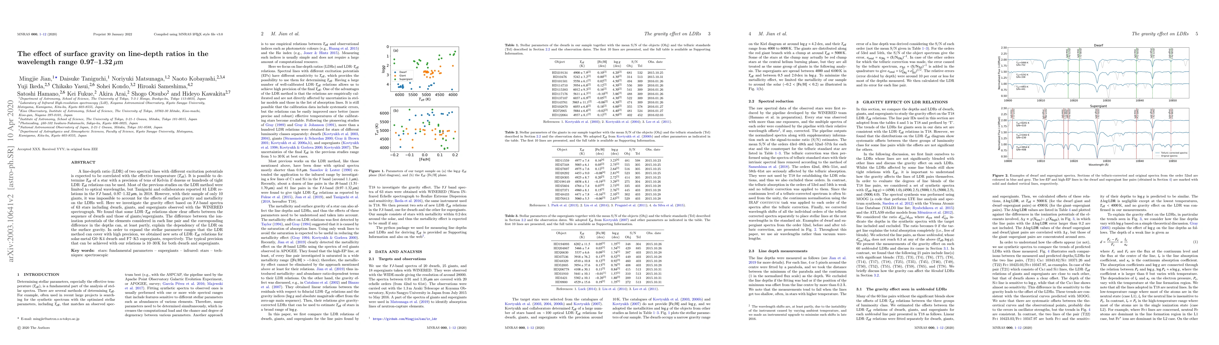 This study investigates the effect of surface gravity on line-depth ratios (LDR) in the YJ band (0.97-1.32 μm) and finds that LDR-$T_\mathrm{eff}$ relations show offsets between dwarfs and giants/supergiants, indicating surface gravity's influence. New LDR-$T_\mathrm{eff}$ relations for G0-K4 dwarfs and F7-K5 supergiants achieve a precision of 10-30 K.