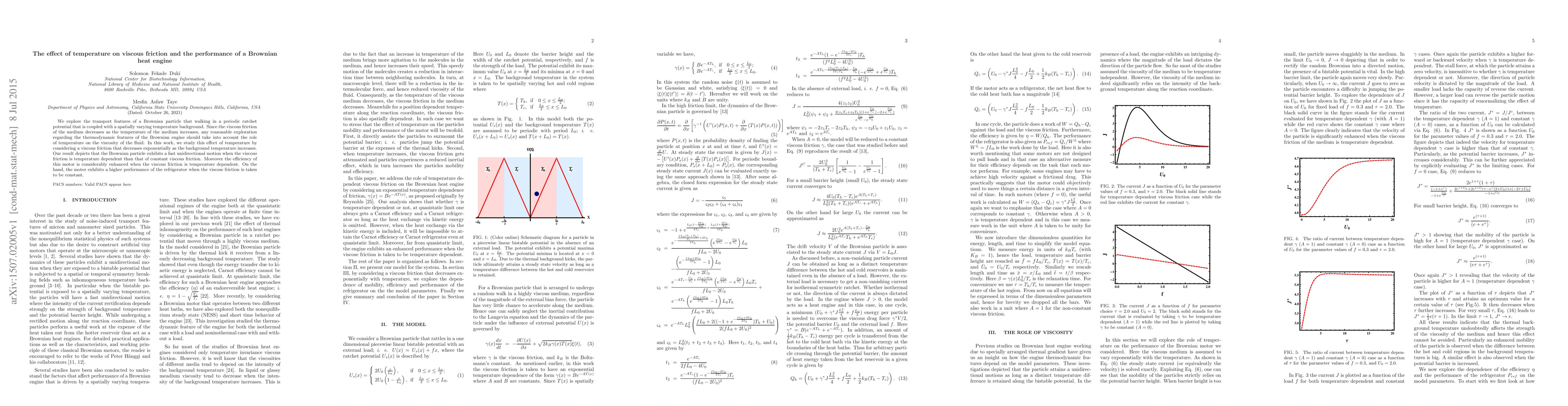 A Brownian heat engine's performance is improved when viscous friction decreases with temperature, but its efficiency as a refrigerator declines.