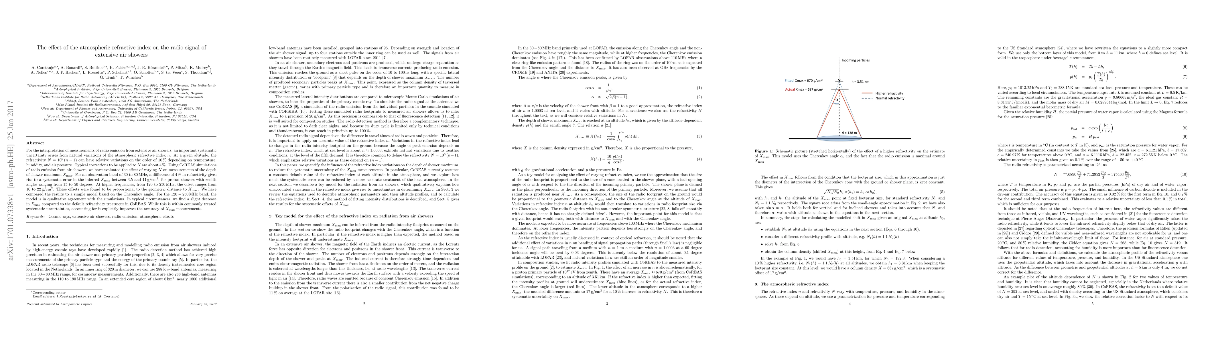 This study evaluates the impact of atmospheric refractive index variations on the measurements of radio signals from extensive air showers, revealing systematic errors in the inferred depth of shower maximum $X_{\rm max}$ due to refractivity changes. The analysis shows a systematic error range of 3.5 to 11 $\mathrm{g/cm^2}$ for 30 to 80 MHz, and 10 to 22 $\mathrm{g/cm^2}$ for 120 to 250 MHz, with these errors being proportional to the distance from $X_{\rm max}$.