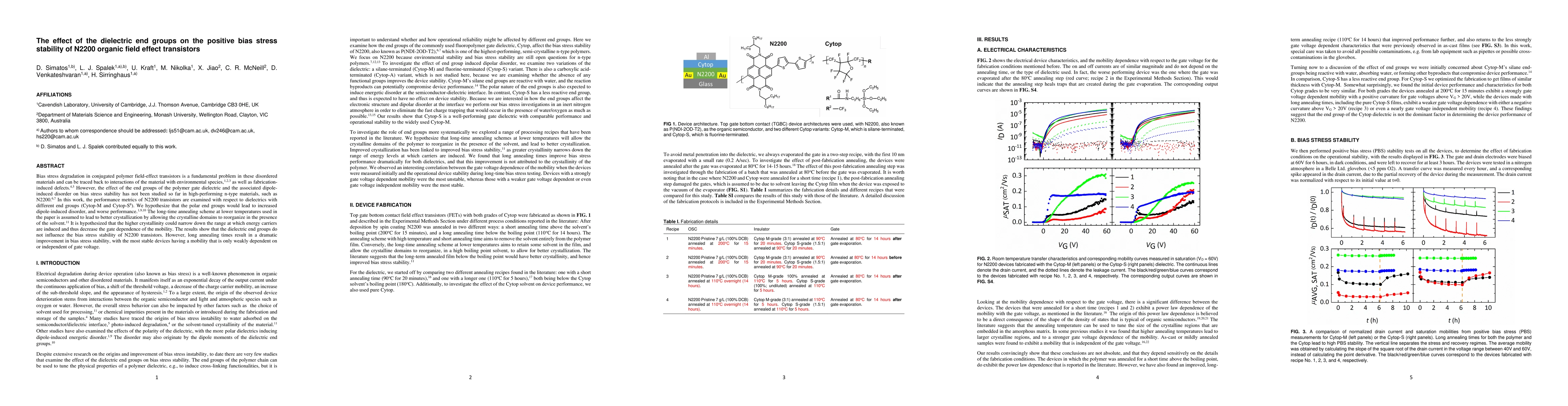 Research shows that dielectric end groups do not affect bias stress stability in N2200 organic field effect transistors, but long annealing times significantly improve stability.