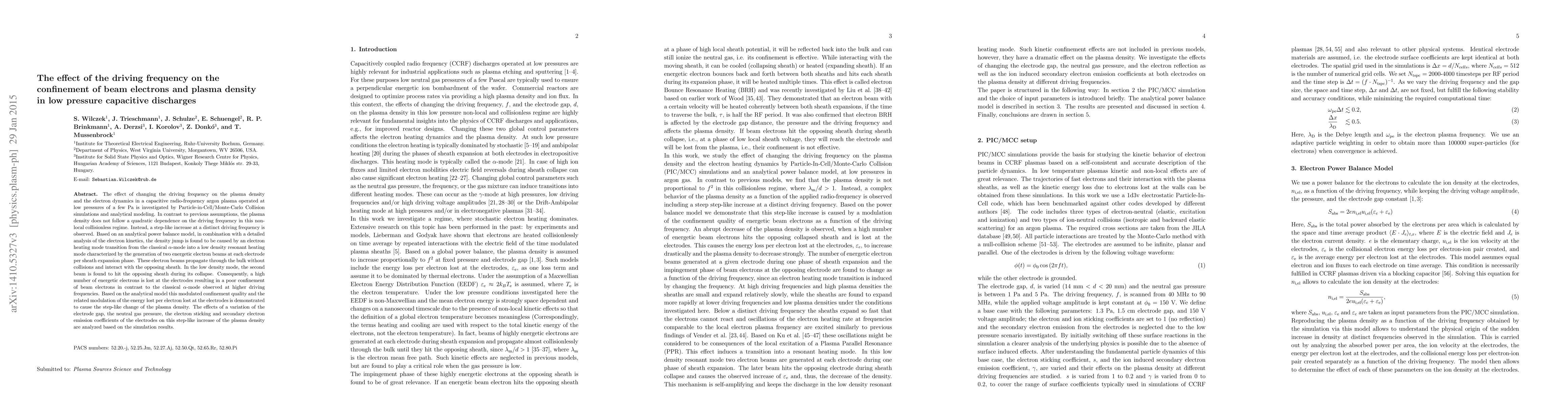 This study investigates the impact of driving frequency on plasma density and electron dynamics in low-pressure argon capacitive discharges, revealing a step-like increase in plasma density at a specific frequency due to a transition from classical electron heating to a resonant mode. The transition results in poor electron confinement and higher energy loss, causing the observed density modulation.