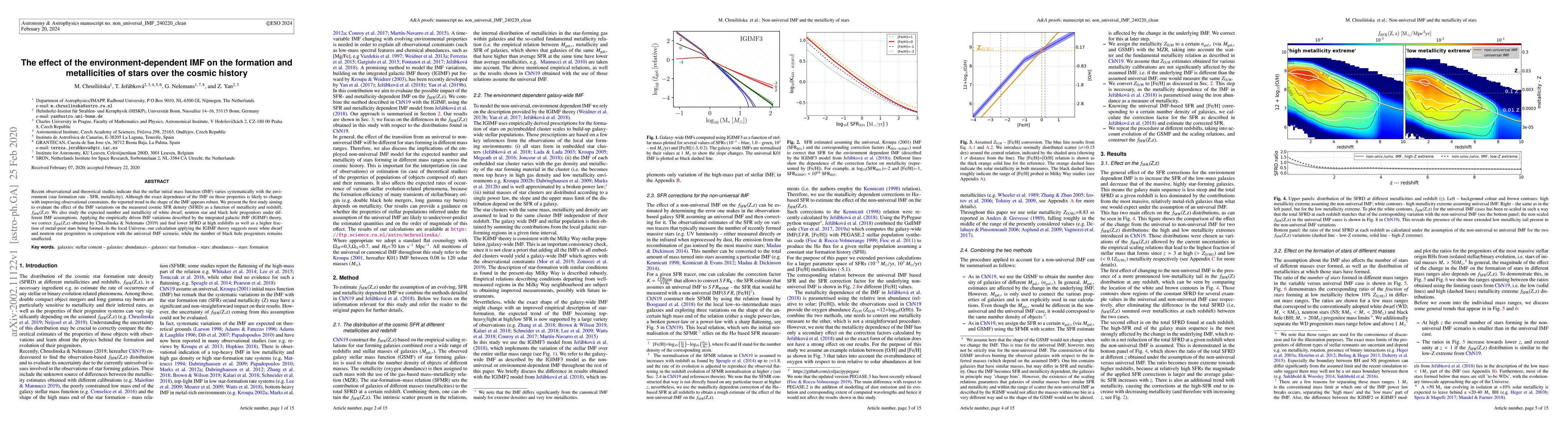 This paper investigates the impact of environment-dependent variations in the stellar initial mass function (IMF) on cosmic star formation rates and metallicities across cosmic history. It finds that applying the integrated galactic IMF theory results in lower star formation rates at high redshifts and a higher fraction of metal-poor stars, while also predicting more white dwarfs and neutron stars in the local universe compared to a universal IMF scenario.