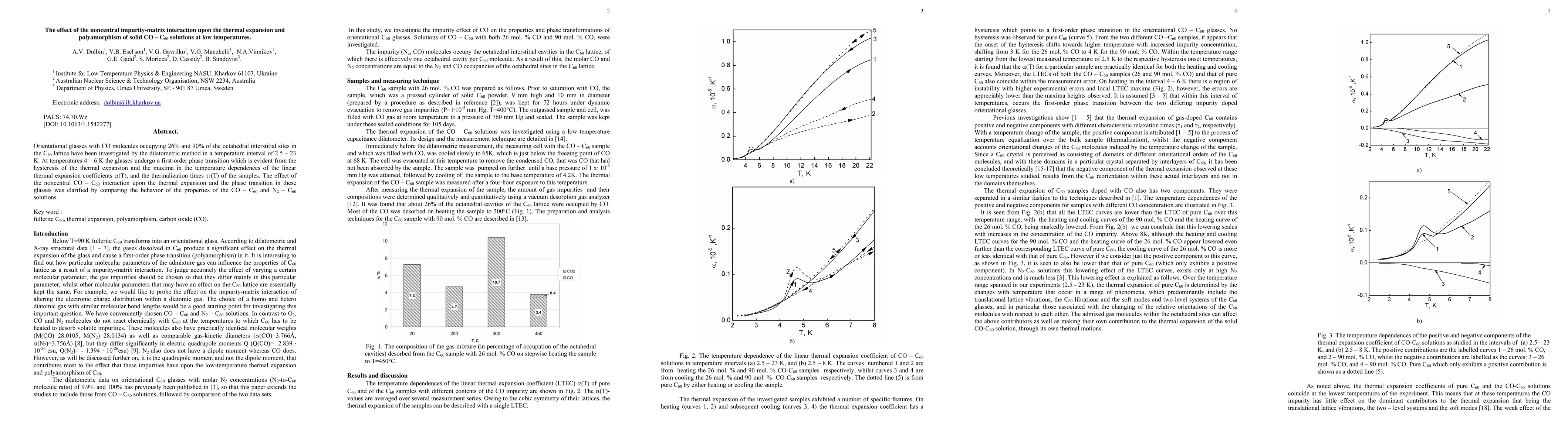 Orientational glasses with CO molecules occupying 26% and 90% of the octahedral interstitial sites in the C60 lattice have been investigated by the dilatometric method in a temperature interval of 2.5 - 23 K. At temperatures 4 - 6 K the glasses undergo a first-order phase transition which is evident from the hysteresis of the thermal expansion and the maxima in the temperature dependences of the linear thermal expansion coefficients, and the thermalization times of the samples. The effect of the noncentral CO-C60 interaction upon the thermal expansion and the phase transition in these glasses was clarified by comparing the behavior of the properties of the CO-C60 and N2-C60 solutions.