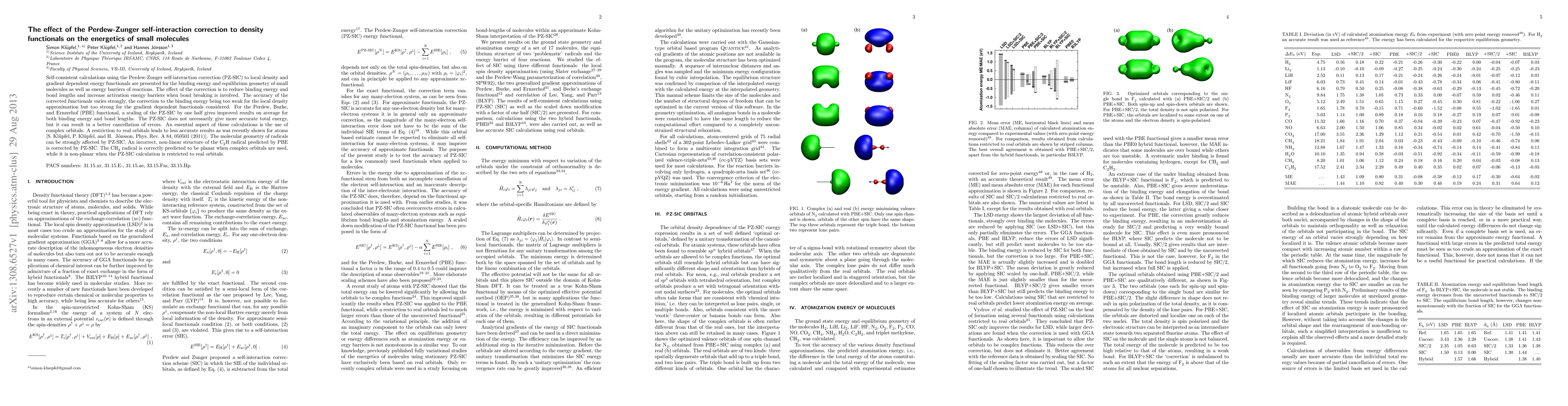 This paper investigates the impact of the Perdew-Zunger self-interaction correction (PZ-SIC) on the energetics of small molecules, finding that it reduces binding energies and bond lengths while increasing activation energy barriers. The correction improves accuracy for PBE functional when scaled by half, but its effectiveness varies with different functionals.