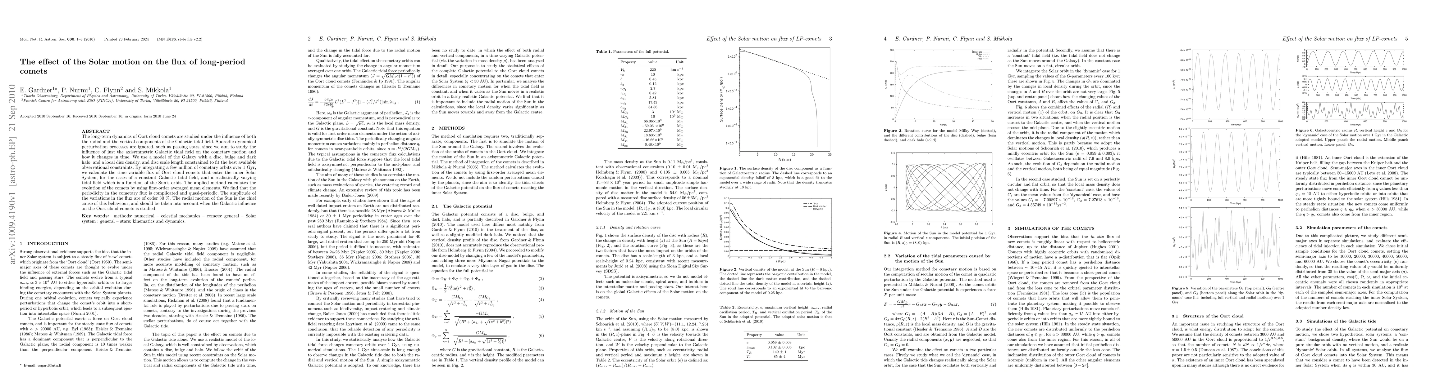 The long-term dynamics of Oort cloud comets are studied under the influence of both the radial and the vertical components of the Galactic tidal field. Sporadic dynamical perturbation processes are ignored, such as passing stars, since we aim to study the influence of just the axisymmetric Galactic tidal field on the cometary motion and how it changes in time. We use a model of the Galaxy with a disc, bulge and dark halo, and a local disc density, and disc scale length constrained to fit the best available observational constraints. By integrating a few million of cometary orbits over 1 Gyr, we calculate the time variable flux of Oort cloud comets that enter the inner Solar System, for the cases of a constant Galactic tidal field, and a realistically varying tidal field which is a function of the Sun's orbit. The applied method calculates the evolution of the comets by using first-order averaged mean elements. We find that the periodicity in the cometary flux is complicated and quasi-periodic. The amplitude of the variations in the flux are of order 30%. The radial motion of the Sun is the chief cause of this behaviour, and should be taken into account when the Galactic influence on the Oort cloud comets is studied.