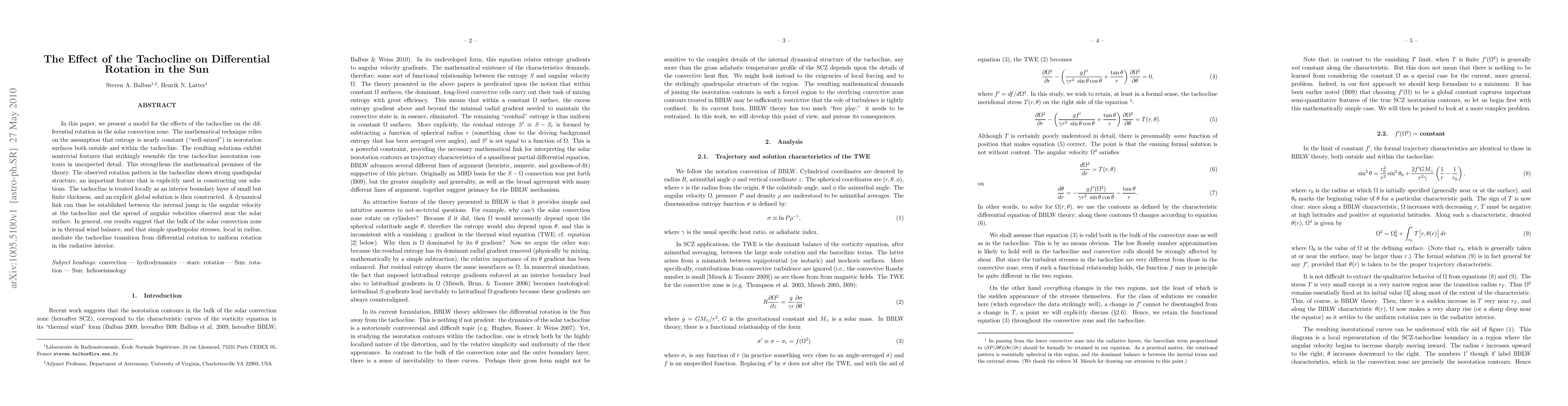 This paper models the tachocline's influence on solar differential rotation, finding that quadrupolar structures in the tachocline closely match observed contours. The study establishes a dynamical link between angular velocity jumps at the tachocline and surface rotation patterns, suggesting thermal wind balance in the convection zone.