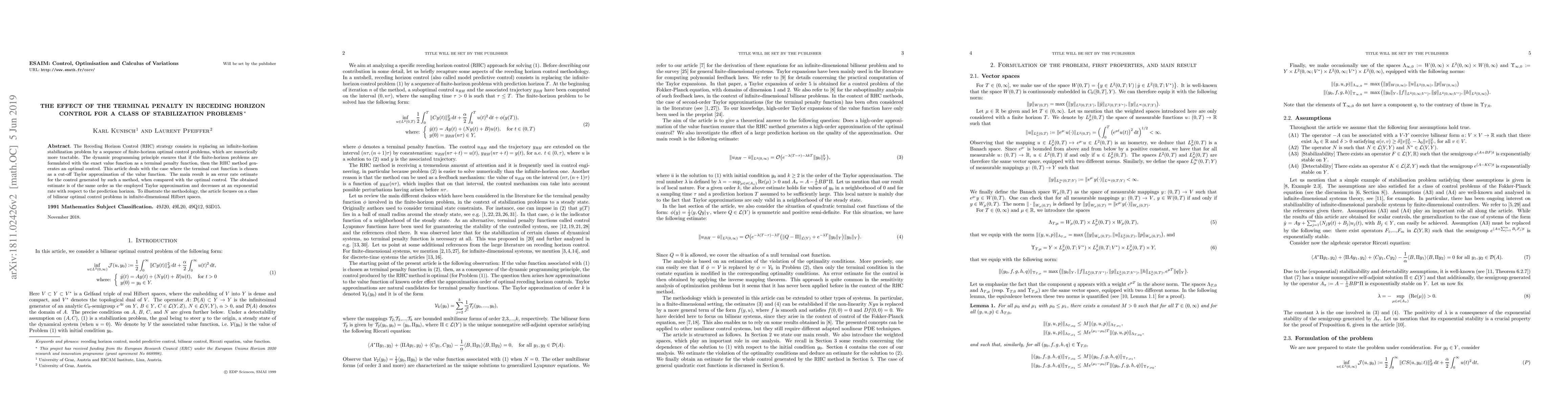 The Receding Horizon Control (RHC) strategy consists in replacing an infinite-horizon stabilization problem by a sequence of finite-horizon optimal control problems, which are numerically more tractable. The dynamic programming principle ensures that if the finite-horizon problems are formulated with the exact value function as a terminal penalty function, then the RHC method generates an optimal control. This article deals with the case where the terminal cost function is chosen as a cut-off Taylor approximation of the value function. The main result is an error rate estimate for the control generated by such a method, when compared with the optimal control. The obtained estimate is of the same order as the employed Taylor approximation and decreases at an exponential rate with respect to the prediction horizon. To illustrate the methodology, the article focuses on a class of bilinear optimal control problems in infinite-dimensional Hilbert spaces.