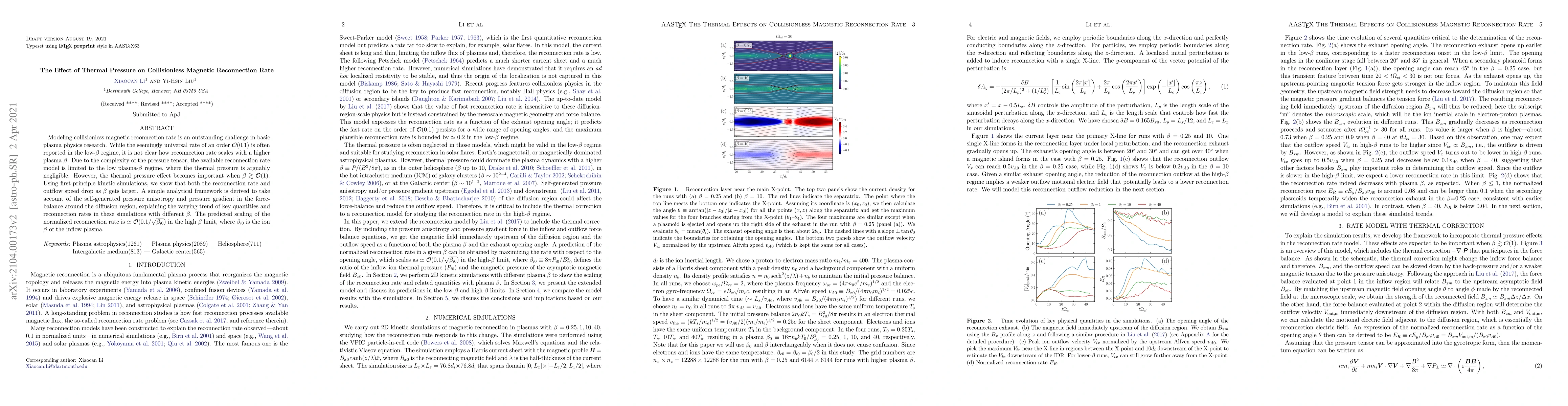 This paper investigates how thermal pressure influences collisionless magnetic reconnection rates in plasmas with higher plasma $\beta$. Using kinetic simulations, it demonstrates that reconnection rates decrease with increasing $\beta$, and proposes an analytical model to explain these trends by considering pressure anisotropy and gradients.