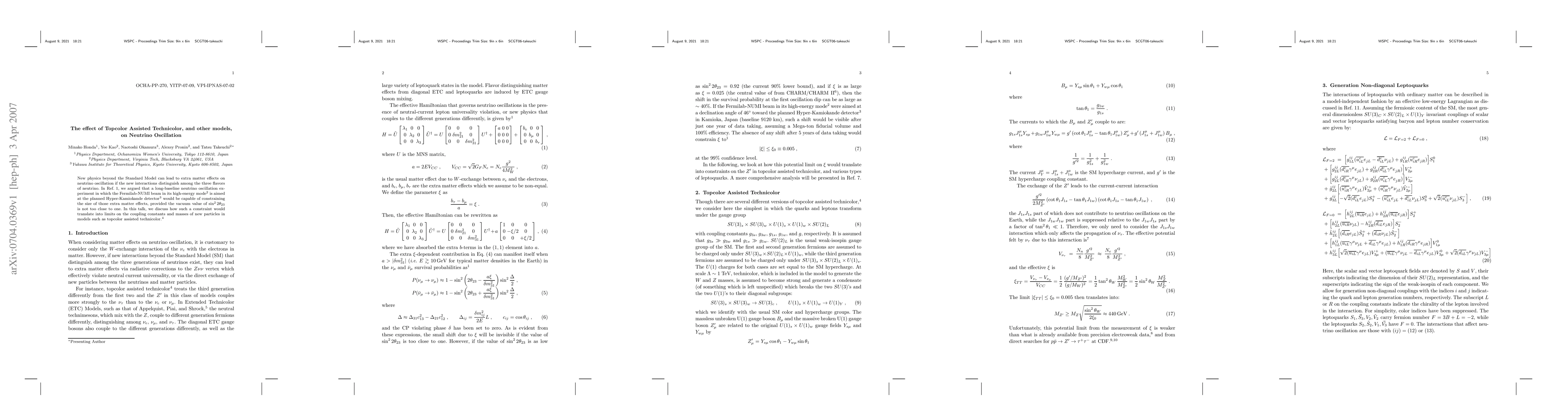 New physics beyond the Standard Model can lead to extra matter effects on neutrino oscillation if the new interactions distinguish among the three flavors of neutrino. In Ref.1, we argued that a long-baseline neutrino oscillation experiment in which the Fermilab-NUMI beam in its high-energy mode is aimed at the planned Hyper-Kamiokande detector would be capable of constraining the size of those extra matter effects, provided the vacuum value of \sin^2 2\theta_{23} is not too close to one. In this talk, we discuss how such a constraint would translate into limits on the coupling constants and masses of new particles in models such as topcolor assisted technicolor.