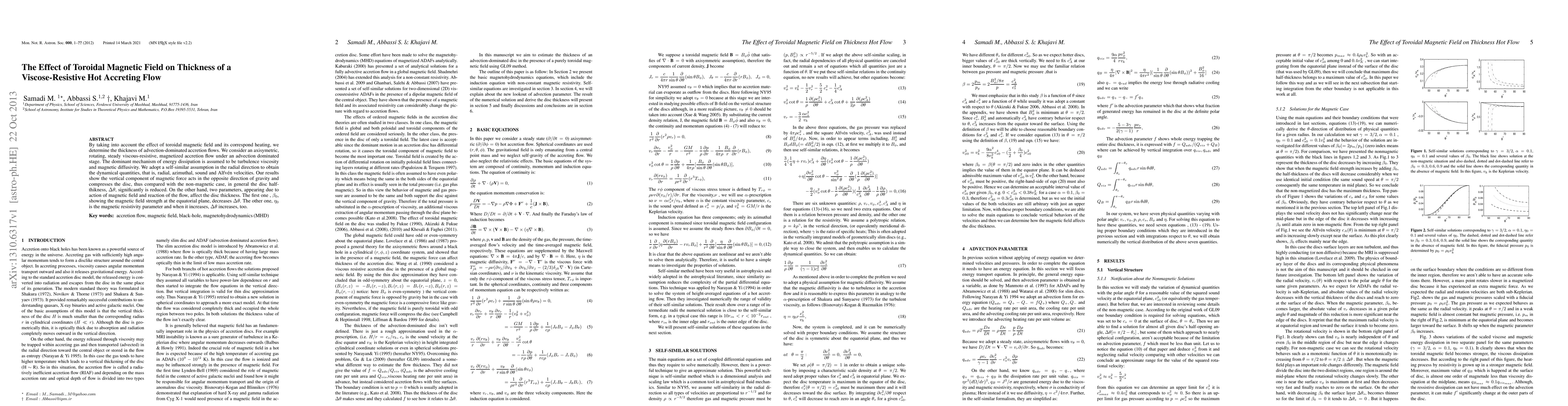 By taking into account the effect of toroidal magnetic field and its correspond heating, we determine the thickness of advection-dominated accretion flows. We consider an axisymetric, rotating, steady viscous-resistive, magnetized accretion flow under an advection dominated stage. The dominant mechanism of energy dissipation is assumed to be turbulence viscosity and magnetic diffusivity. We adopt a self-similar assumption in the radial direction to obtain the dynamical quantities, that is, radial, azimuthal, sound and Alfv\' en velocities. Our results show the vertical component of magnetic force acts in the opposite direction of gravity and compresses the disc, thus compared with the non-magnetic case, in general the disc half-thikness, $\Delta\theta$, significantly is reduced. On the other hand, two parameters, appearing due to action of magnetic field and reaction of the flow, affect the disc thickness. The first one, $\beta_0$, showing the magnetic field strength at the equatorial plane, decreases $\Delta\theta$. The other one, $\eta_0$ is the magnetic resistivity parameter and when it increases, $\Delta\theta$ increases, too.