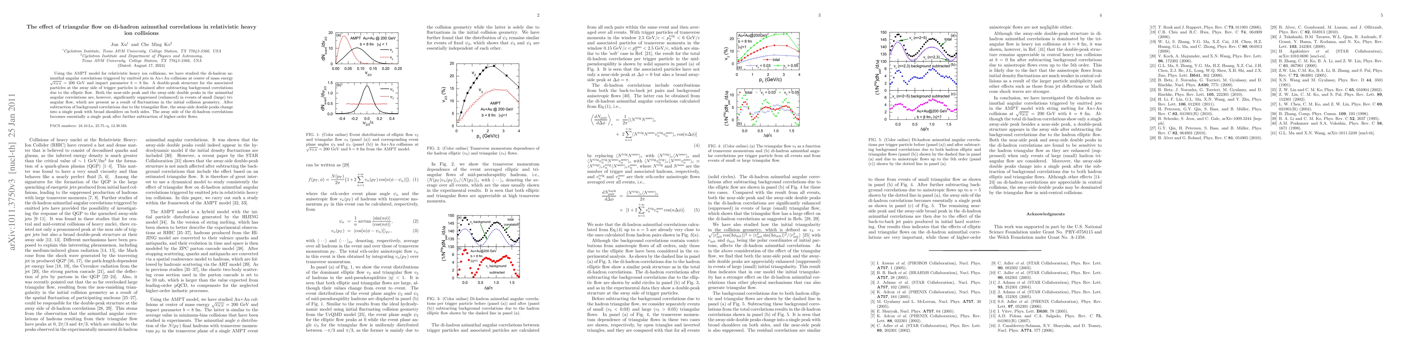 This study investigates di-hadron azimuthal correlations in Au+Au collisions using the AMPT model, revealing a double-peak structure influenced by triangular flow. The near-side peak and away-side double peaks are suppressed (enhanced) in events with small (large) triangular flow, which arises from initial collision geometry fluctuations. After correcting for triangular flow, the away-side structure simplifies to a single peak with broad shoulders.