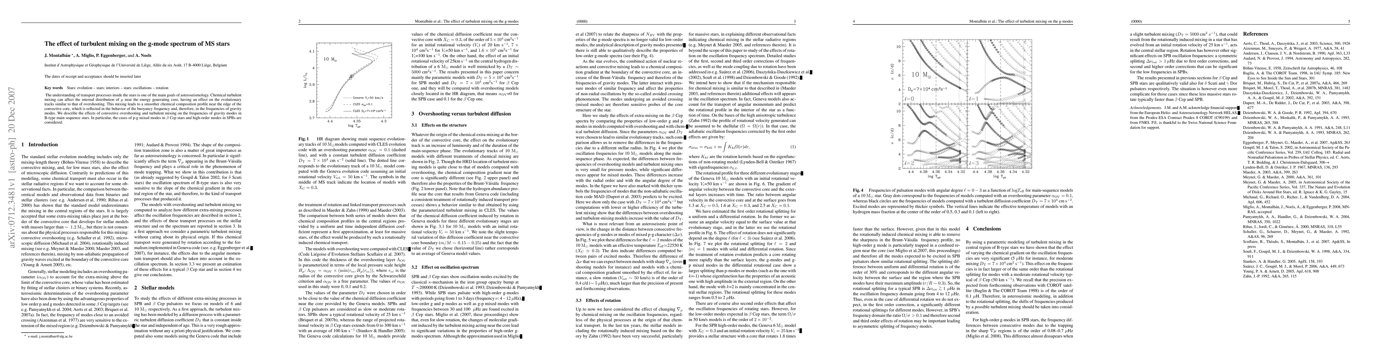 The understanding of transport processes inside the stars is one of the main goals of asteroseismology. Chemical turbulent mixing can affect the internal distribution of \mu near the energy generating core, having an effect on the evolutionary tracks similar to that of overshooting. This mixing leads to a smoother chemical composition profile near the edge of the convective core, which is reflected in the behavior of the buoyancy frequency and, therefore, in the frequencies of gravity modes. We describe the effects of convective overshooting and turbulent mixing on the frequencies of gravity modes in B-type main sequence stars. In particular, the cases of p-g mixed modes in beta Cep stars and high-order modes in SPBs are considered.