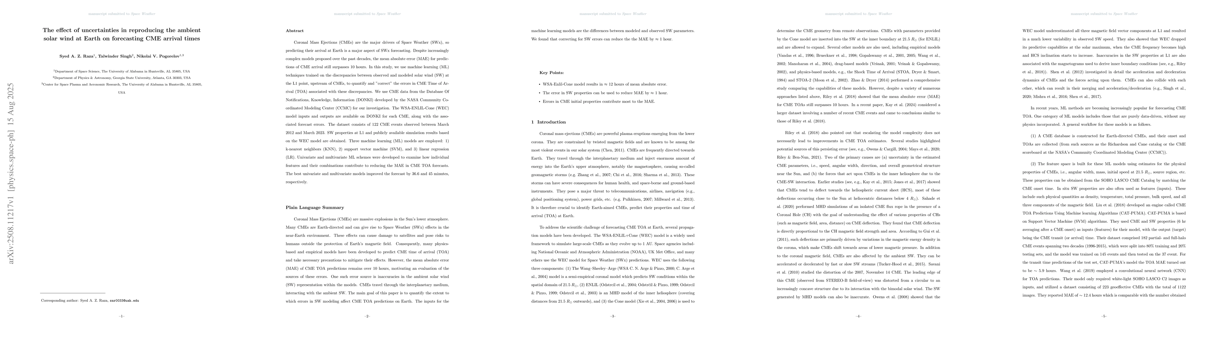 Coronal Mass Ejections (CMEs) are the major drivers of Space Weather (SWx), so predicting their arrival at Earth is a major aspect of SWx forecasting. Despite increasingly complex models proposed over the past decades, the mean absolute error (MAE) for predictions of CME arrival still surpasses 10 hours. In this study, we use machine learning (ML) techniques trained on the discrepancies between observed and modeled solar wind (SW) at the L1 point, upstream of CMEs, to quantify and ''correct'' the errors in CME Time of Arrival (TOA) associated with these discrepancies. We use CME data from the Database Of Notifications, Knowledge, Information (DONKI) developed by the NASA Community Coordinated Modeling Center (CCMC) for our investigation. The WSA-ENLIL-Cone (WEC) model inputs and outputs are available on DONKI for each CME, along with the associated forecast errors. The dataset consists of 122 CME events observed between March 2012 and March 2023. SW properties at L1 and publicly available simulation results based on the WEC model are obtained. Three machine learning (ML) models are employed: 1) k-nearest neighbors (KNN), 2) support vector machine (SVM), and 3) linear regression (LR). Univariate and multivariate ML schemes were developed to examine how individual features and their combinations contribute to reducing the MAE in CME TOA forecasts. The best univariate and multivariate models improved the forecast by 36.6 and 45 minutes, respectively.