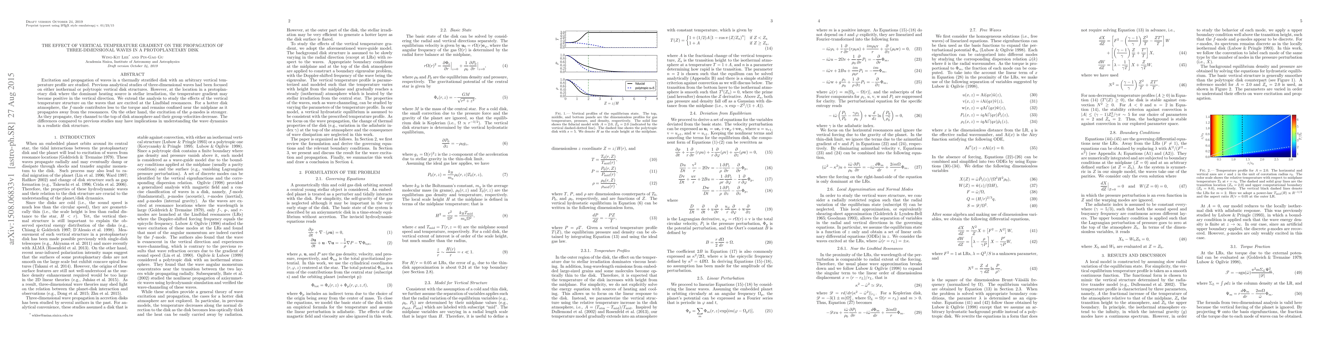 This paper investigates how a vertical temperature gradient in a protoplanetary disk affects the propagation of three-dimensional waves, particularly the $f$-mode and $g$-modes, revealing that the $f$-mode's contribution to the torque diminishes while $g$-modes become more strongly excited and channel towards the disk's upper atmosphere.