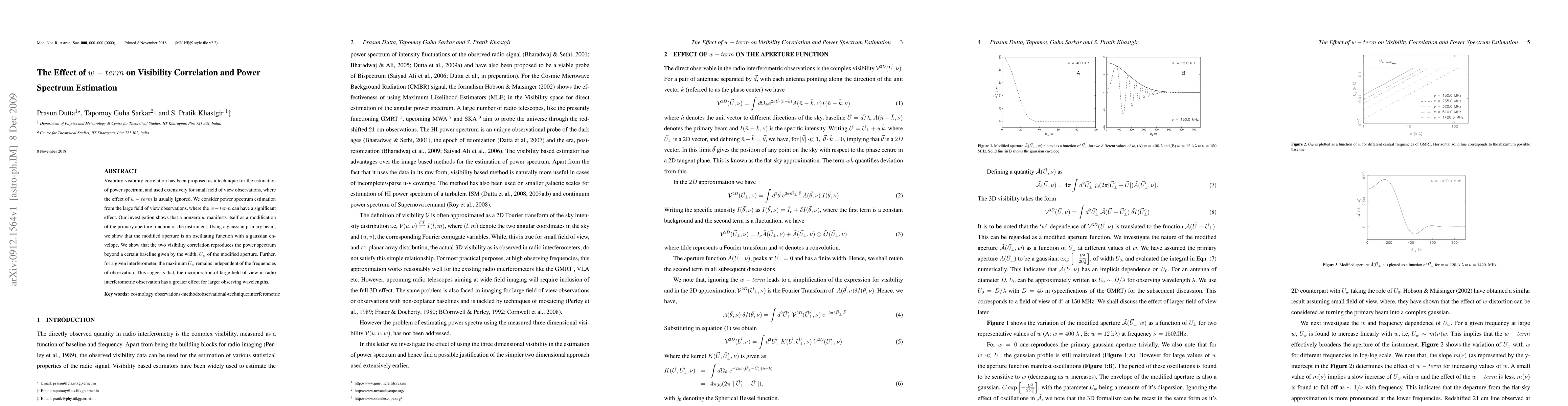 This paper investigates the impact of the $w$-term on visibility correlation and power spectrum estimation in large field of view radio interferometric observations. It demonstrates that a nonzero $w$-term modifies the primary aperture function, resulting in an oscillating function with a Gaussian envelope, which influences power spectrum estimation beyond a baseline dependent on $U_{w}$.
