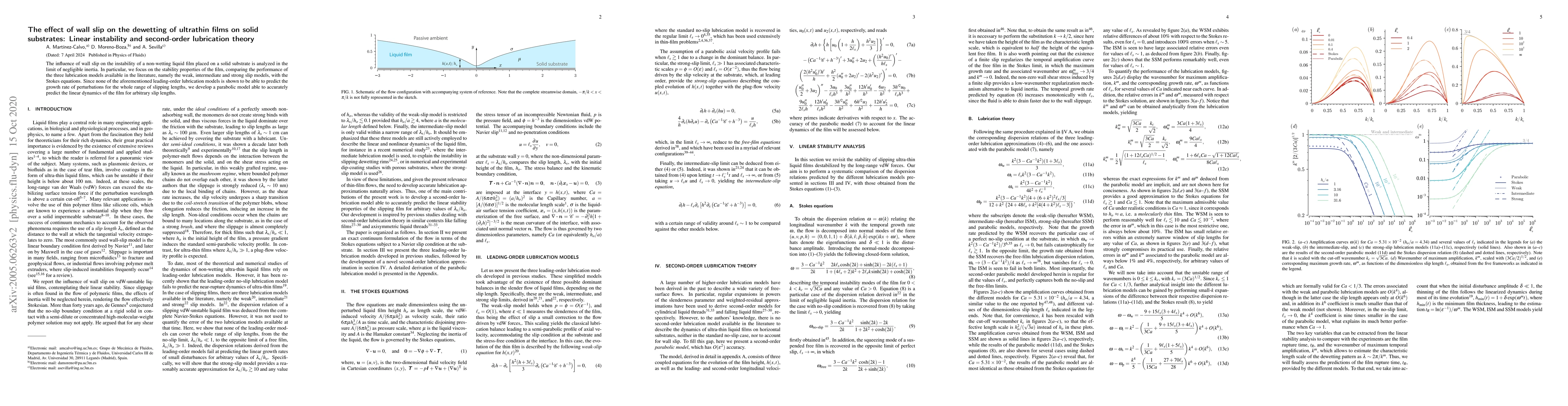 The influence of wall slip on the instability of a non-wetting liquid film placed on a solid substrate is analyzed in the limit of negligible inertia. In particular, we focus on the stability properties of the film, comparing the performance of the three lubrication models available in the literature, namely the weak, intermediate and strong slip models, with the Stokes equations. Since none of the aforementioned leading-order lubrication models is shown to be able to predict the growth rate of perturbations for the whole range of slipping lengths, we develop a parabolic model able to accurately predict the linear dynamics of the film for arbitrary slip lengths.