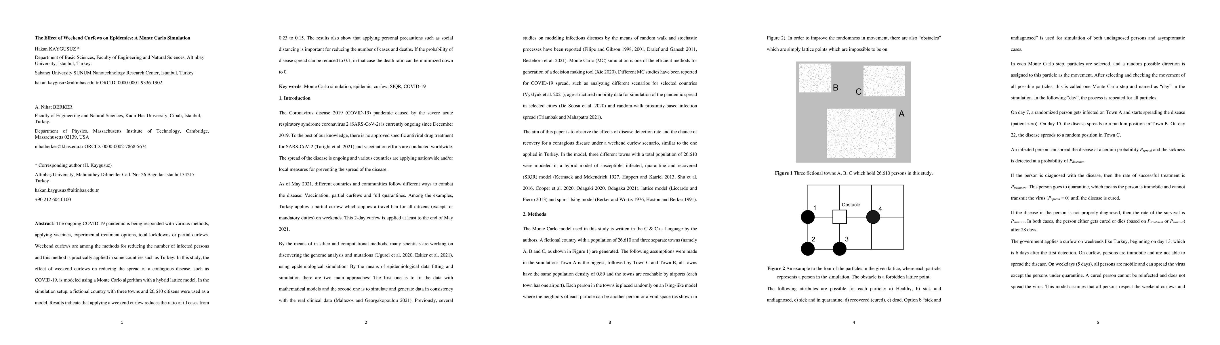 This study uses a Monte Carlo simulation with a hybrid lattice model to evaluate the impact of weekend curfews on reducing COVID-19 spread in a fictional country. Results show that weekend curfews significantly lower active cases, highlighting their effectiveness alongside personal precautions like social distancing.