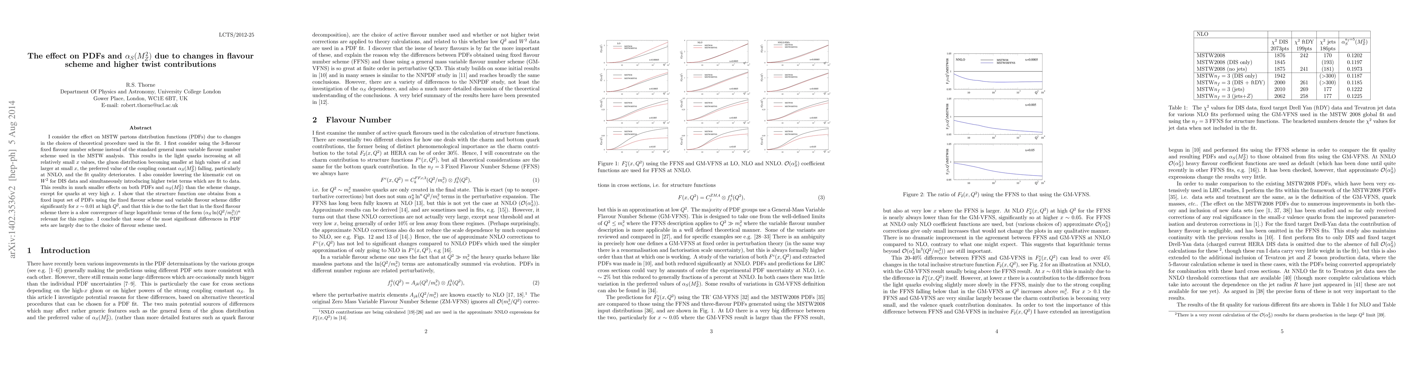 I consider the effect on MSTW partons distribution functions (PDFs) due to changes in the choices of theoretical procedure used in the fit. I first consider using the 3-flavour fixed flavour number scheme instead of the standard general mass variable flavour number scheme used in the MSTW analysis. This results in the light quarks increasing at all relatively small $x$ values, the gluon distribution becoming smaller at high values of $x$ and larger at small $x$, the preferred value of the coupling constant $\alpha_S(M_Z^2)$ falling, particularly at NNLO, and the fit quality deteriorates. I also consider lowering the kinematic cut on $W^2$ for DIS data and simultaneously introducing higher twist terms which are fit to data. This results in much smaller effects on both PDFs and $\alpha_S(M_Z^2)$ than the scheme change, except for quarks at very high $x$. I show that the structure function one obtains from a fixed input set of PDFs using the fixed flavour scheme and variable flavour scheme differ significantly for $x \sim 0.01$ at high $Q^2$, and that this is due to the fact that in the fixed flavour scheme there is a slow convergence of large logarithmic terms of the form $(\alpha_S\ln(Q^2/m_c^2))^n$ relevant for this regime. I conclude that some of the most significant differences in PDF sets are largely due to the choice of flavour scheme used.