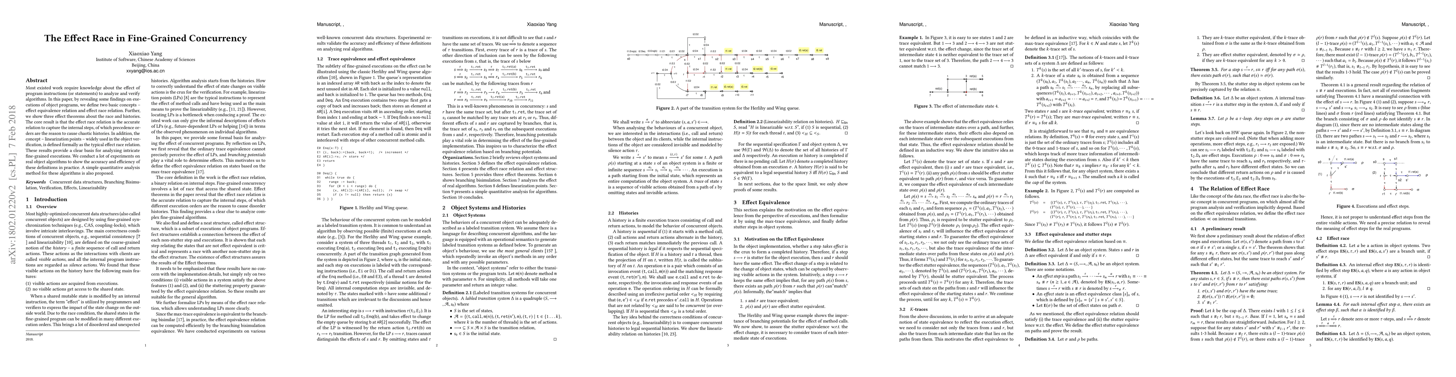 This paper introduces a new approach to analyzing concurrent programs, focusing on the concept of effect race relation, which captures internal steps and precedence orders, providing a clear basis for fine-grained concurrency analysis.
