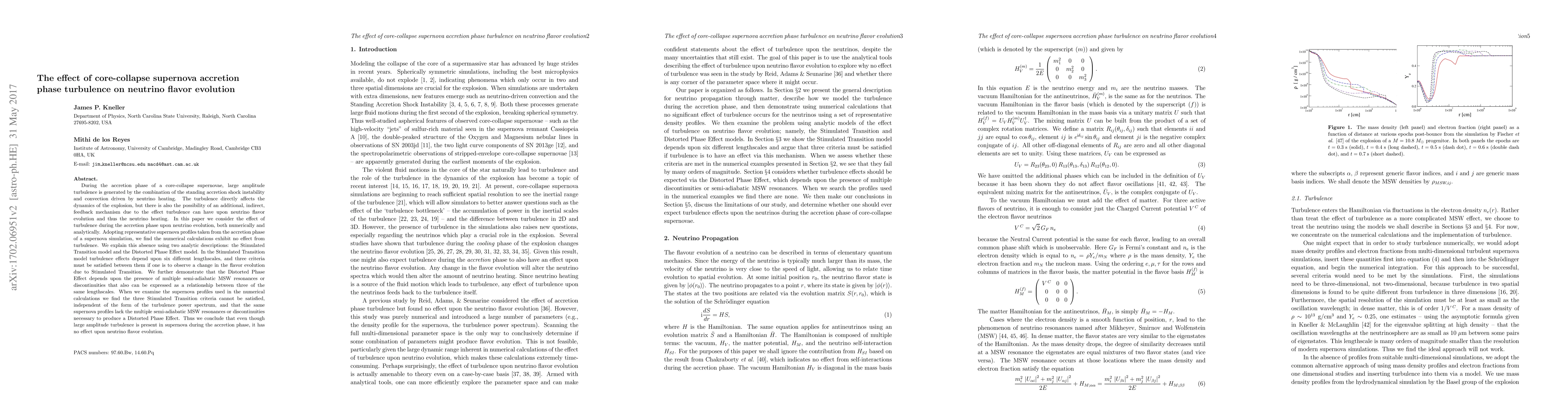 During the accretion phase of a core-collapse supernovae, large amplitude turbulence is generated by the combination of the standing accretion shock instability and convection driven by neutrino heating. The turbulence directly affects the dynamics of the explosion, but there is also the possibility of an additional, indirect, feedback mechanism due to the effect turbulence can have upon neutrino flavor evolution and thus the neutrino heating. In this paper we consider the effect of turbulence during the accretion phase upon neutrino evolution, both numerically and analytically. Adopting representative supernova profiles taken from the accretion phase of a supernova simulation, we find the numerical calculations exhibit no effect from turbulence. We explain this absence using two analytic descriptions: the Stimulated Transition model and the Distorted Phase Effect model. In the Stimulated Transition model turbulence effects depend upon six different lengthscales, and three criteria must be satisfied between them if one is to observe a change in the flavor evolution due to Stimulated Transition. We further demonstrate that the Distorted Phase Effect depends upon the presence of multiple semi-adiabatic MSW resonances or discontinuities that also can be expressed as a relationship between three of the same lengthscales. When we examine the supernova profiles used in the numerical calculations we find the three Stimulated Transition criteria cannot be satisfied, independent of the form of the turbulence power spectrum, and that the same supernova profiles lack the multiple semi-adiabatic MSW resonances or discontinuities necessary to produce a Distorted Phase Effect. Thus we conclude that even though large amplitude turbulence is present in supernova during the accretion phase, it has no effect upon neutrino flavor evolution.