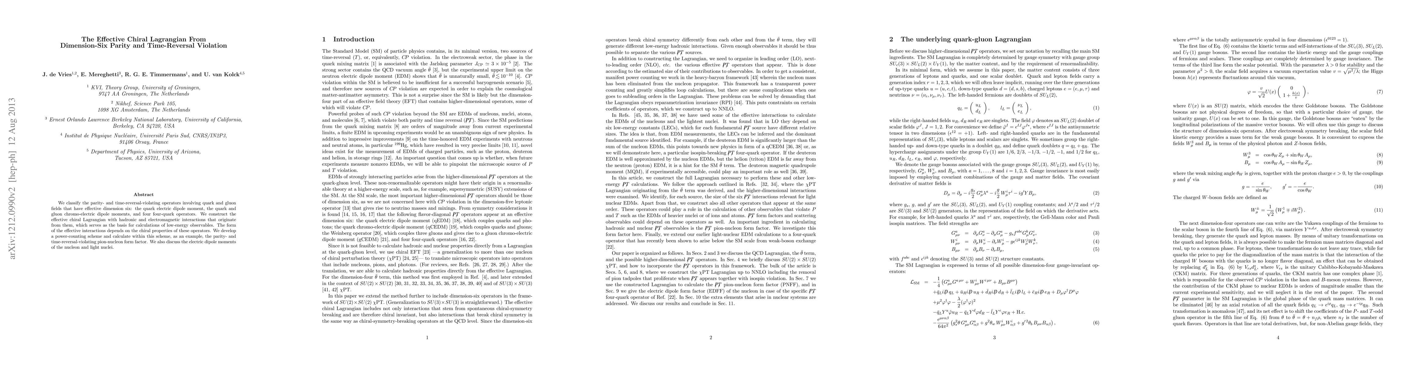 This paper classifies dimension-six parity- and time-reversal-violating operators in the effective chiral Lagrangian, including quark and gluon dipole moments and four-quark interactions. It constructs the effective chiral Lagrangian for low-energy observables and calculates the pion-nucleon form factor as an example.