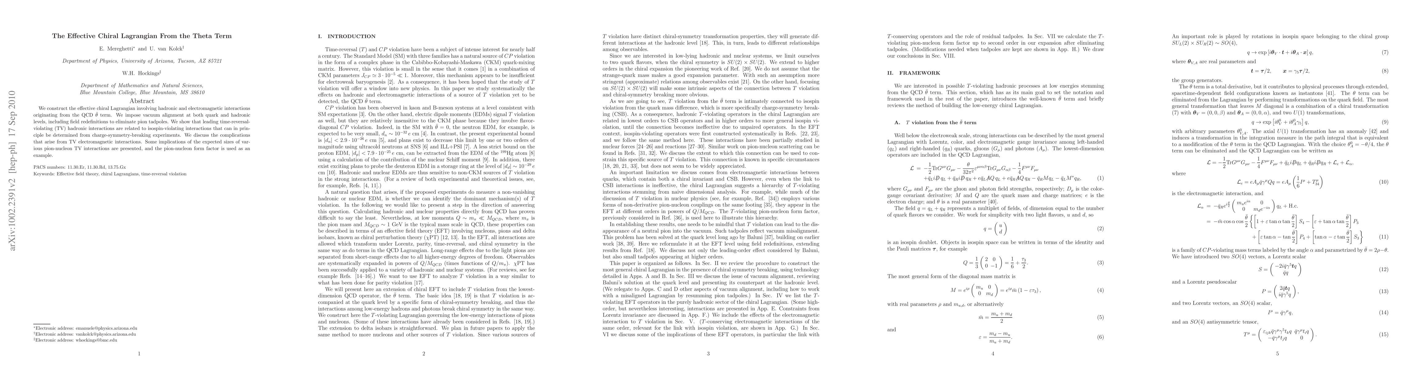 Researchers developed an effective chiral Lagrangian that explains interactions between hadrons and electromagnetism from QCD's theta term, revealing potential connections to charge-symmetry-breaking experiments and implications for nucleon physics.
