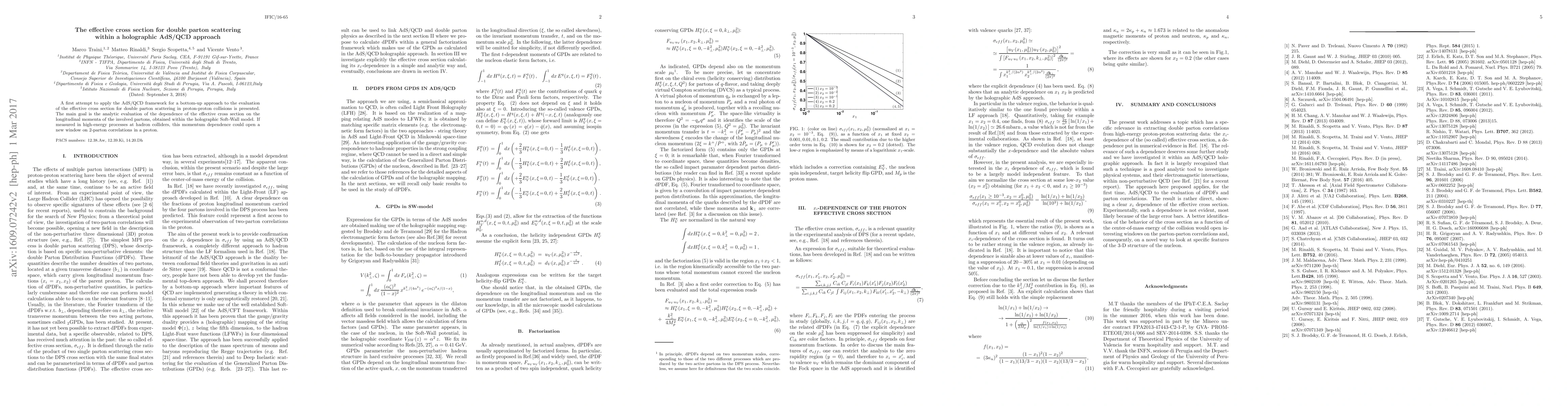 A first attempt to apply the AdS/QCD framework for a bottom-up approach to the evaluation of the effective cross section for double parton scattering in proton-proton collisions is presented. The main goal is the analytic evaluation of the dependence of the effective cross section on the longitudinal momenta of the involved partons, obtained within the holographic Soft-Wall model. If measured in high-energy processes at hadron colliders, this momentum dependence could open a new window on 2-parton correlations in a proton.