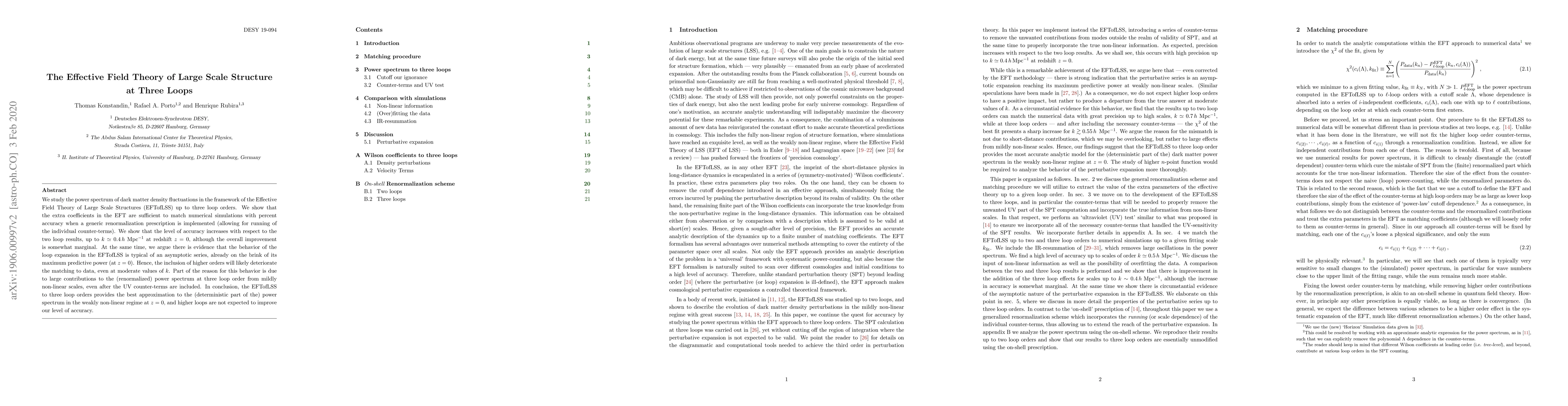 A new study using the Effective Field Theory of Large Scale Structures (EFTofLSS) found that matching numerical simulations with percent accuracy is achieved up to $k imes 0.4 ext{ }h ext{Mpc}^{-1}$ at redshift $z=0$, and higher loops are not expected to improve accuracy beyond this point.