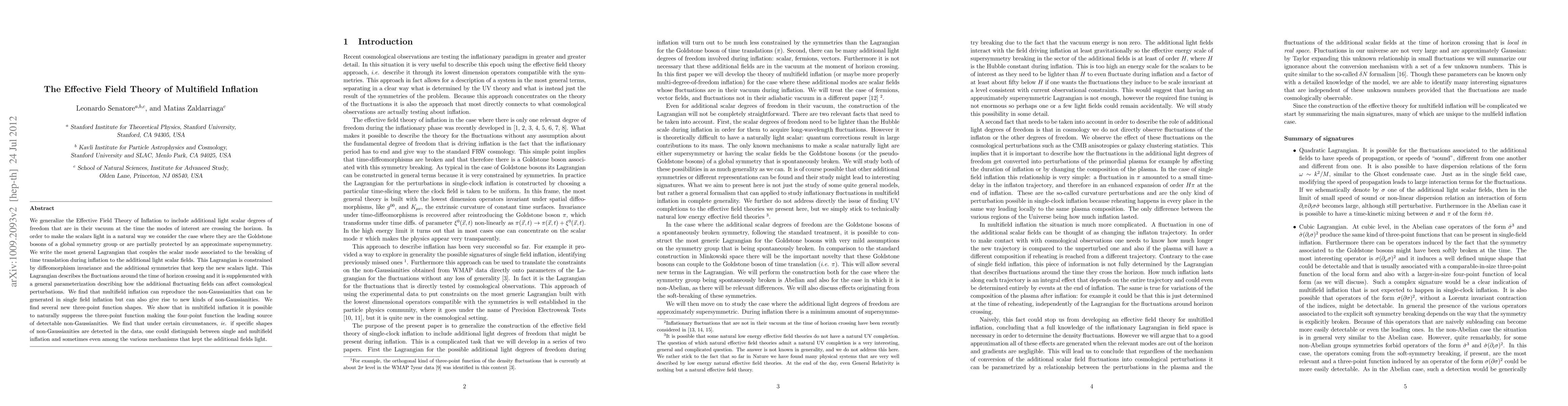 This paper generalizes the Effective Field Theory of Inflation to include additional light scalar fields, potentially as Goldstone bosons or partially protected by supersymmetry. It explores the Lagrangian describing fluctuations and their impact on cosmological perturbations, finding that multifield inflation can generate new types of non-Gaussianities and naturally suppress the three-point function, making the four-point function the primary source of detectable non-Gaussianities.